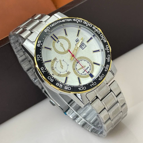 Edifice For men طرح ۳ موتوره کرنوگراف موتور کوارتز دارای روزشمار بند استیل رنگ ثابت ضدآب قفل با حک casio قطر صفحه ۴۵ میل مناسب ستهای اسپرت