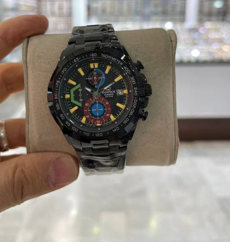 ساعت مچی مردانه casio Edifice For men طرح ۳ موتوره موتور کوارتز دارای روزشمار بند استیل رنگ ثابت فوق العاده سنگین و با کیفیت ضدآب در حد دست شستن قفل کلیپسی قاب پشت حک شده قطر صفحه ۴۵ میل مناسب ستهای اسپرت و کلاسیک آقایان