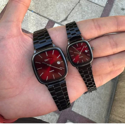ست ساعت زنانه و مردانه CASIO Couple Watch New Collection "کاسیو" بند استیل ست مناسب زوجهای جوان تعداد محدود موتور باکیفیت دارای روزشمار بند استیل شیشه کریستال قفل کلیپسی