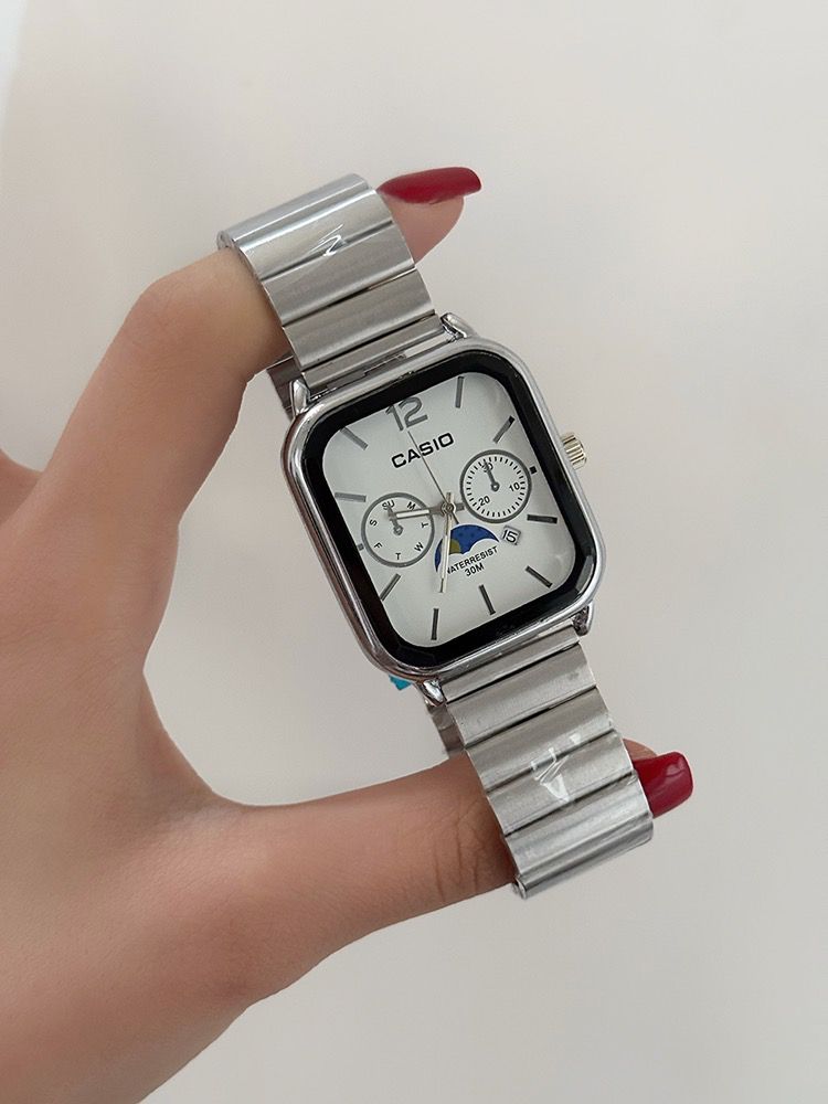 ست ساعت زنانه و مردانه ☑️CASIO ☆☆☆☆ ▪︎high quality👌 >>ست کاسیو << قفل کلیپسی کیفیت سفارشی دارای روز شمار مقاوم دربرابر آب بند استیل موتور کوارتز رنگ سیلور خاص کلاسیک