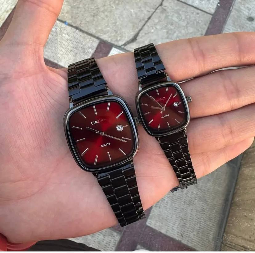 ست ساعت زنانه و مردانه CASIO Couple Watch New Collection "کاسیو" بند استیل ست مناسب زوجهای جوان تعداد محدود موتور باکیفیت دارای روزشمار بند استیل شیشه کریستال قفل کلیپسی