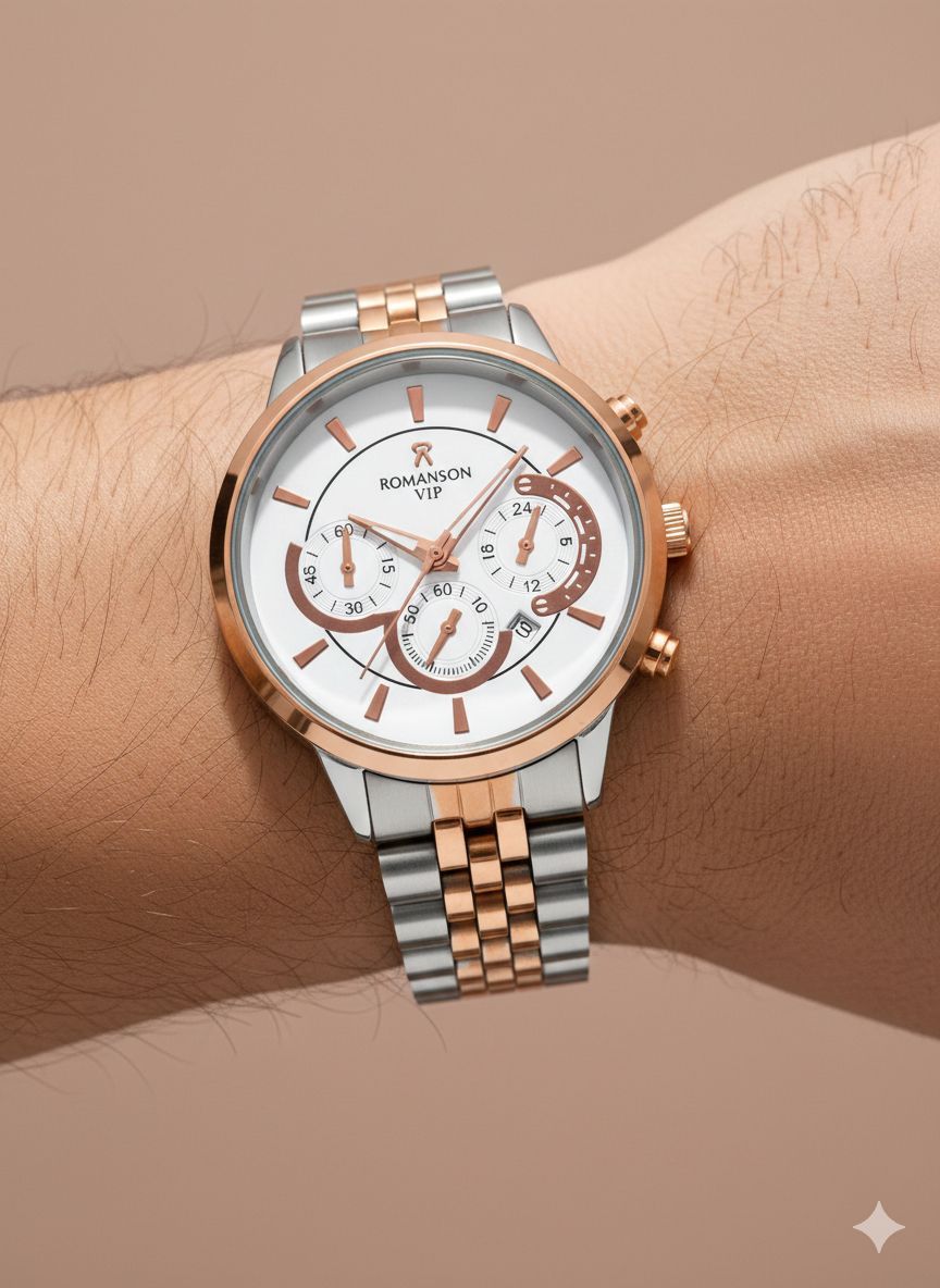 ساعت مچی مردانه کد 2305 مردانه برند رومانسون ROMANSON باکیفیت بدنه استیل طراحی خاص و زیبا صفحه سفید موتور کوارتز روز شمار طرح سه موتوره