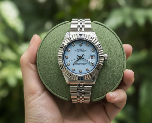 ساعت مچی زنانه ☑️ROLEX Date just زنونه رولکس دیت جاس پشت و سرکوک رولکسی دارای واشر بندی صفحه برجسته دارای روز شمار قفل کلیپسی صفحه نگینی بند اجری تقویم تلسکوپی جعبه و باطری رایگان