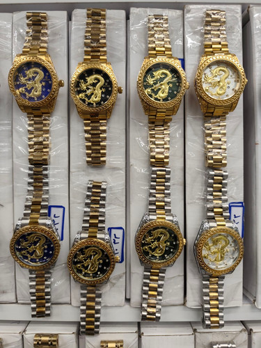 ست ساعت زنانه و مردانه برند رولکس Rolex Day-Date Set دارای روزشمار مارک رولکس بر روی قفل بند استیل رنگ ثابت شیشه کریستال