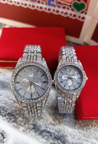 ست ⌚️ساعت فول نگین ⌚️ ✅ست و تک ✅️تقویم دار ✅️رنگ طلایی و نقرهای ✅️آبکاری خوب