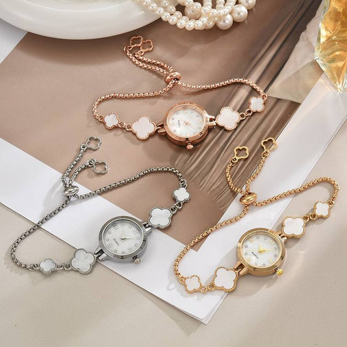 ست زنانه و دخترانه ساعت و زیورآلات استیل رنگ ثابت بهمراه جعبه کادویی و باتری یدکی