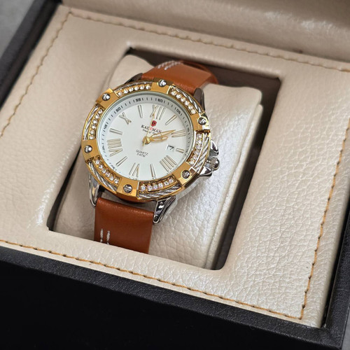 ساعت مچی زنانه کیدمن مدل KADEMAN 9081 Kademan 9081 موتور ژاپن رنگ ثابت طراحی فوق العاده شیشه کریستالی مقاوم در برابر ضربه و خش قفل استیل بند چرم قطر صفحه 35 میلیمتر ضدآب در حد دست شستن