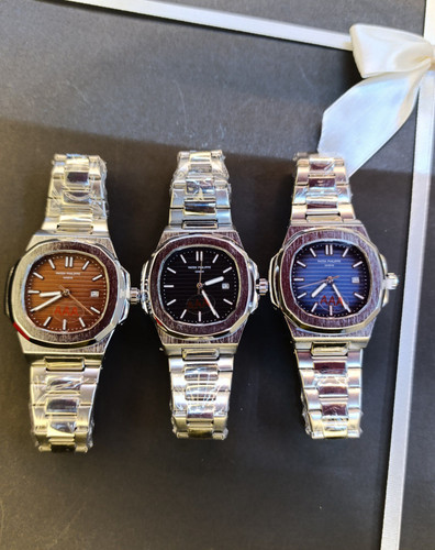 ساعت مچی ✅برند:پتک فیلیپ ✅جنسیت :مردانه ✅نوع صفحه :انالوگ ✅شکل صفحه :مربع ✅نوع قفل (سگک):پروانه ای ✅رنگ صفحه :مشکی/ آبی /قهوهای ✅رنگ قاب :نقره ای ✅رنگ بند:نقره ای ✅جنس بدنه استیل ✅جنس بند:استیل ✅نوع موتور:انالوگ ✅کشور سازنده :موتورژاپن