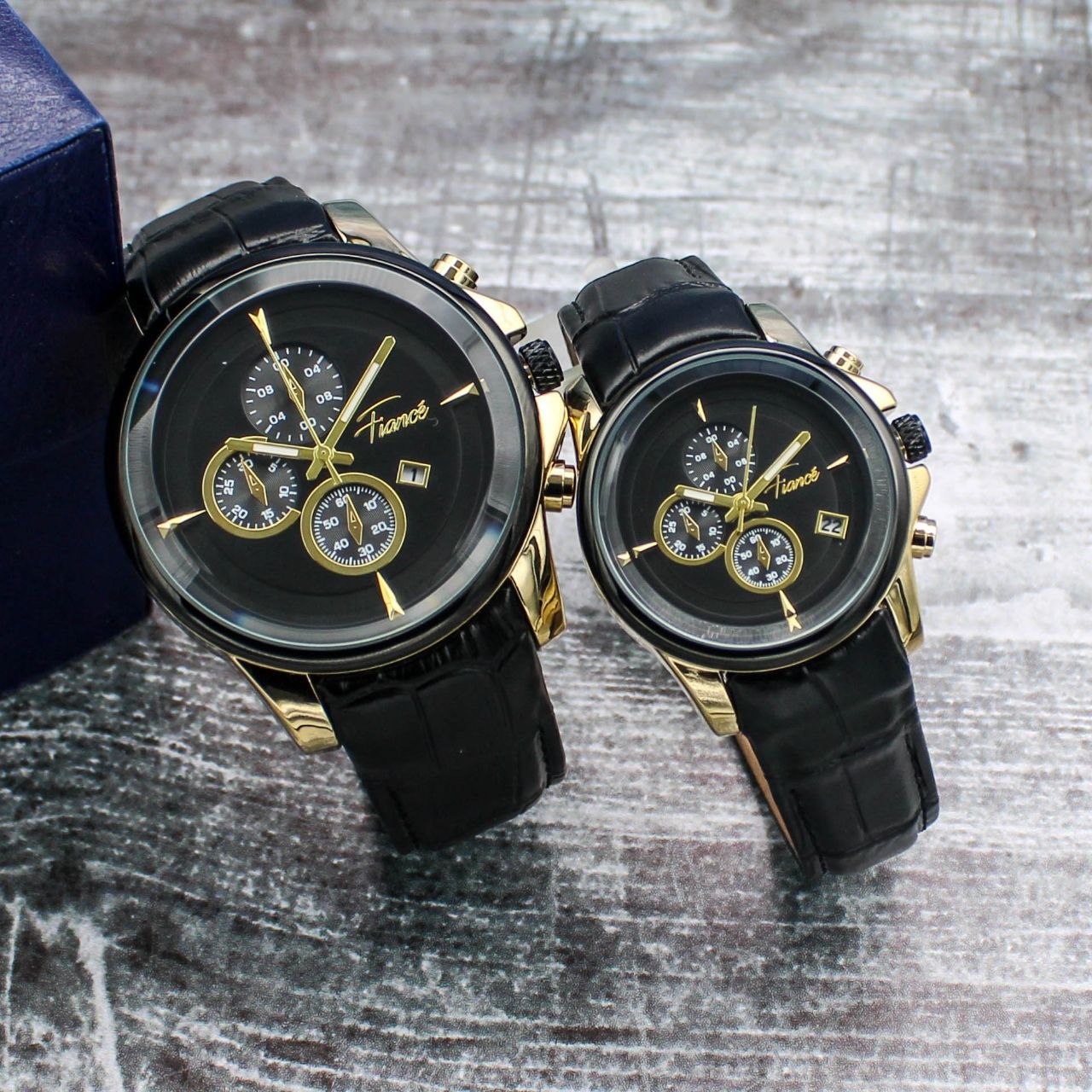 ست ساعت زنانه و مردانه ☑️Fiance 🔥excellent ⌚️ست فیکس فیانسه دارای روز شمار بالاترین گرید بازار موتور ژاپن قفل پروانه ای رنگ ثابت بندچرمی فیکس موتور کوارتز
