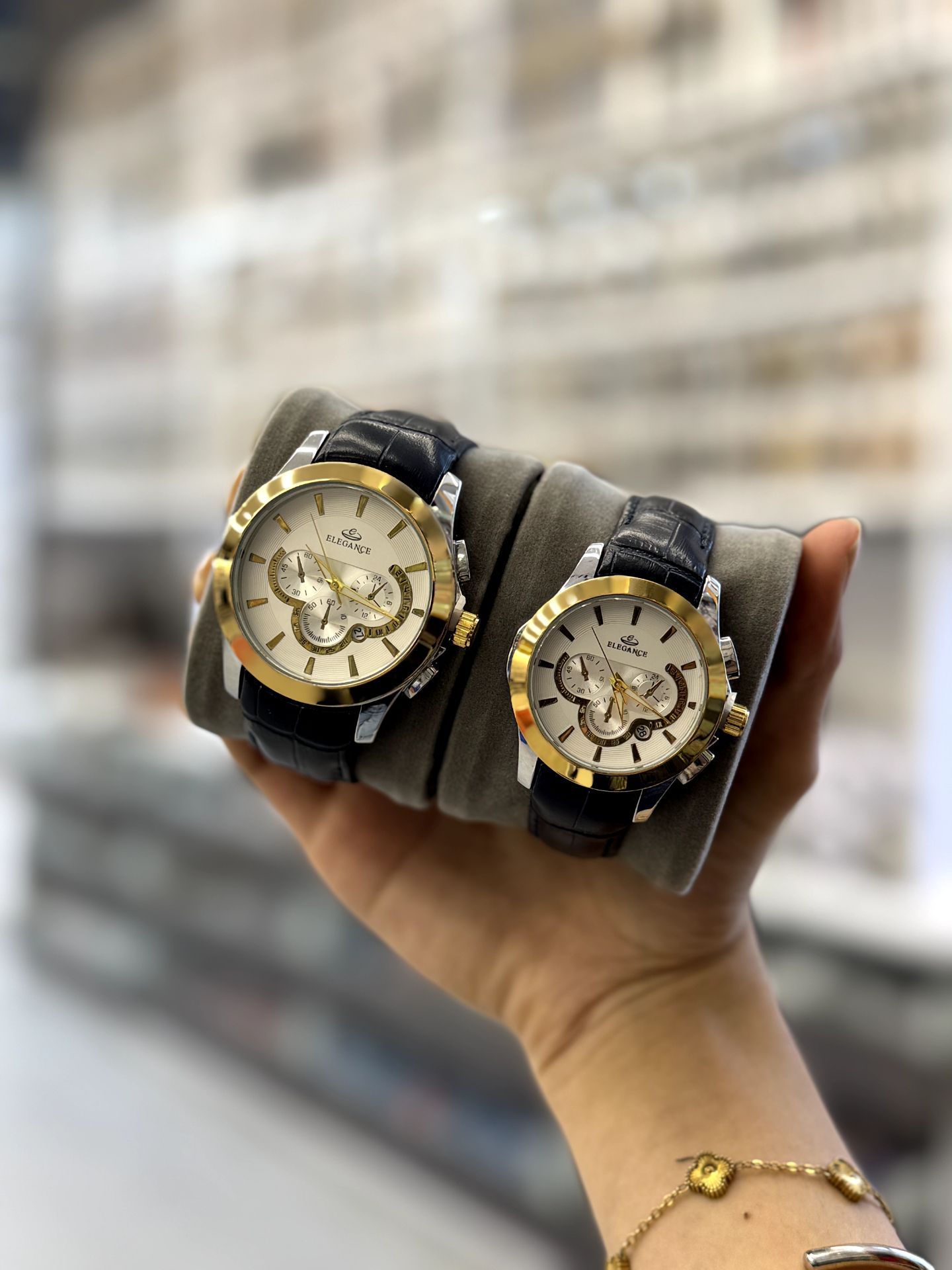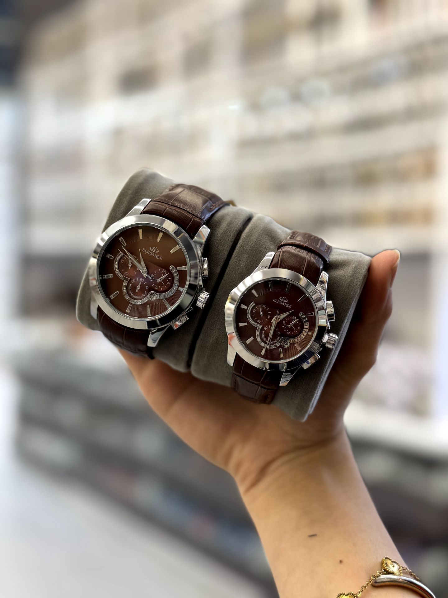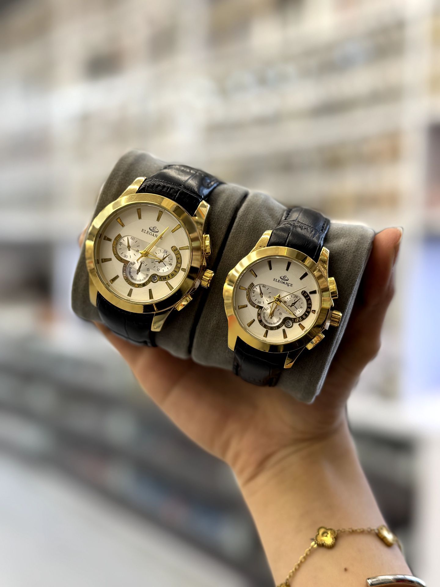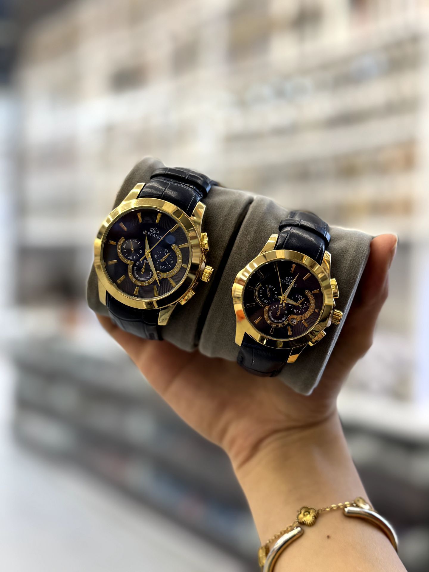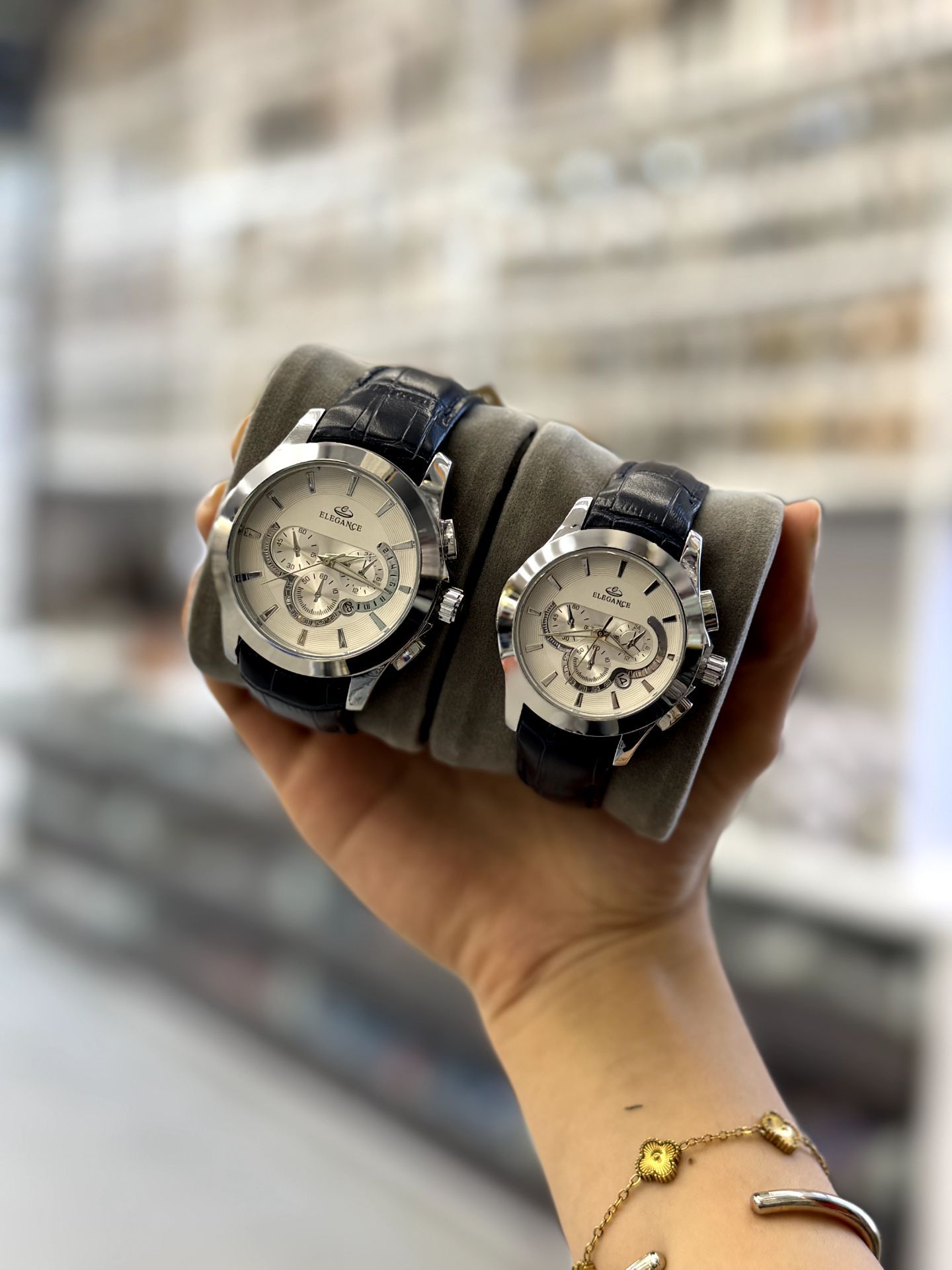 ست ساعت زنانه و مردانه بند چرم مارک الگانس تقویم فعال