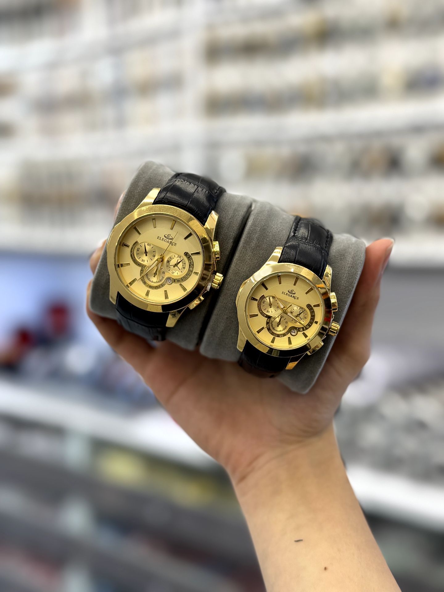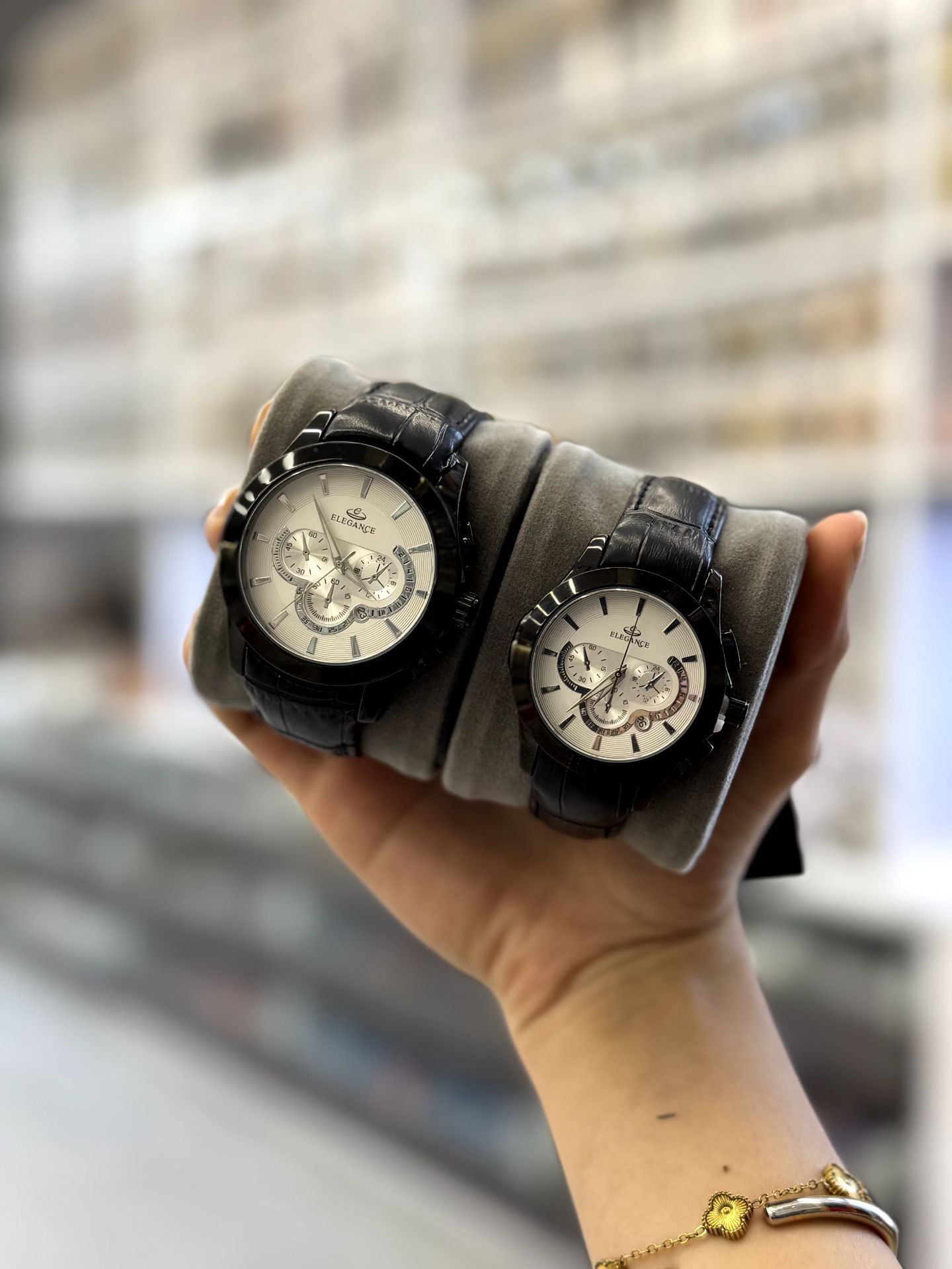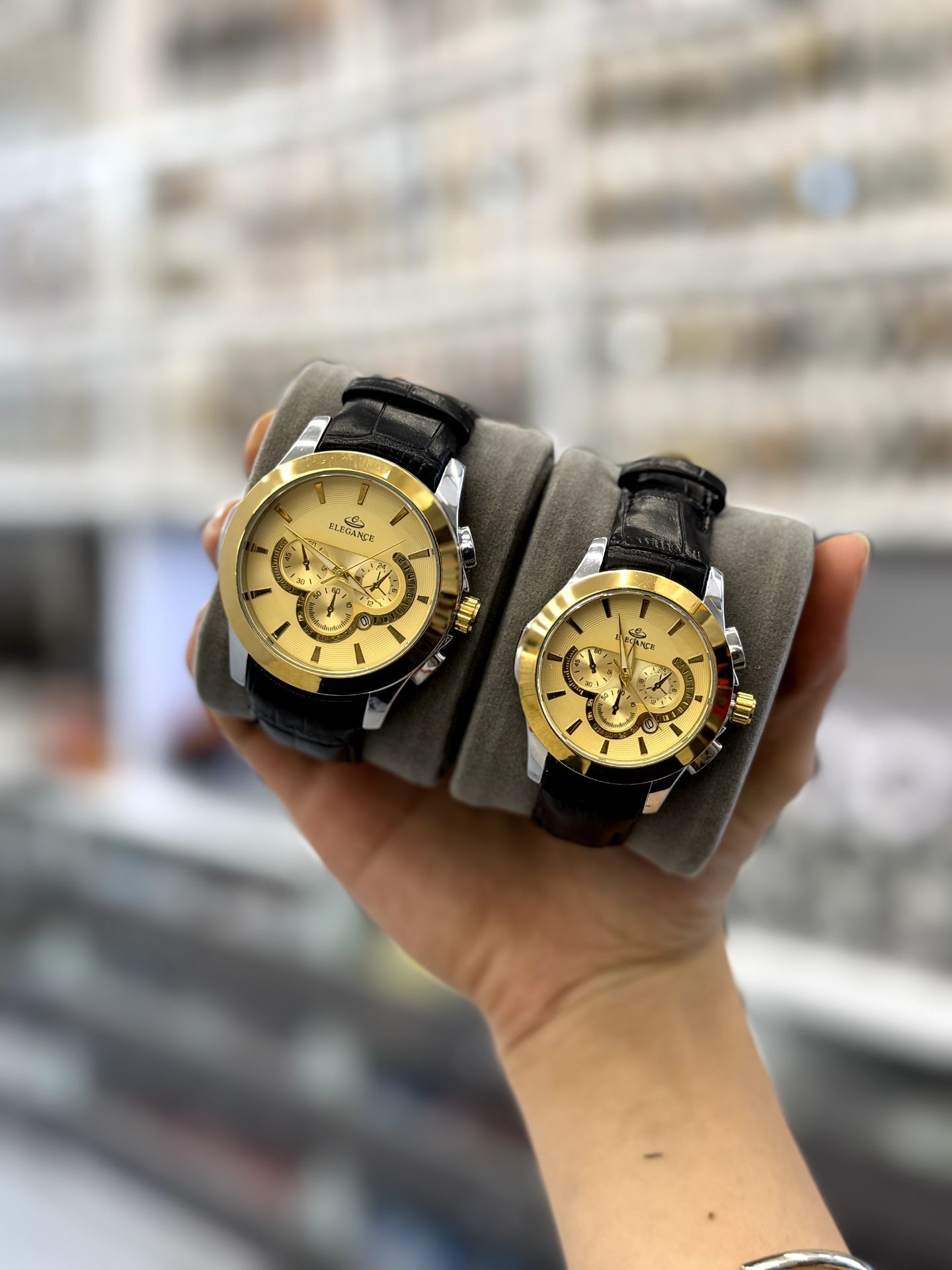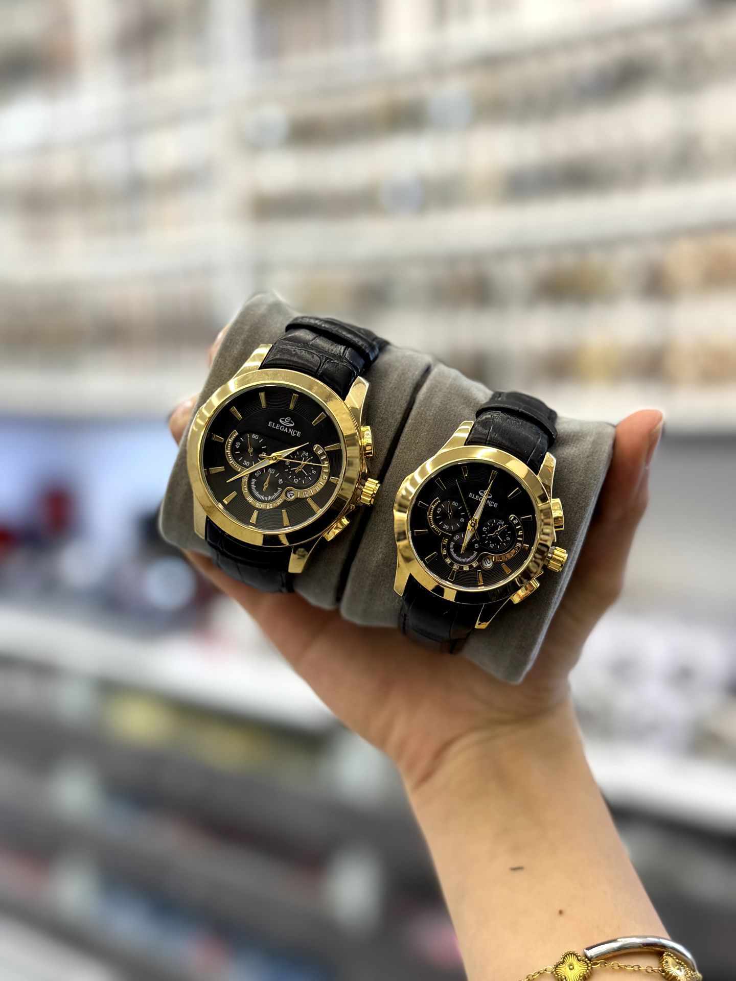 ست ساعت زنانه و مردانه بند چرم مارک الگانس تقویم فعال