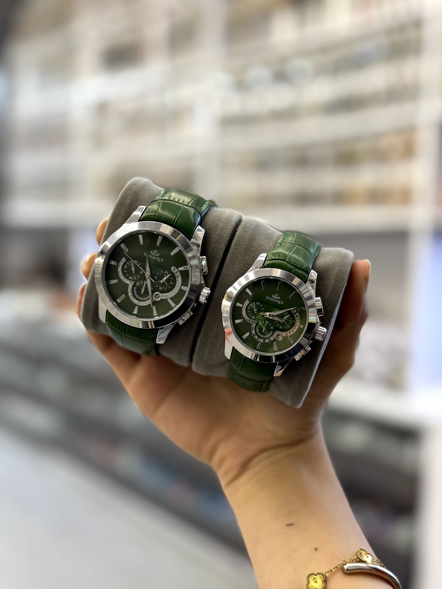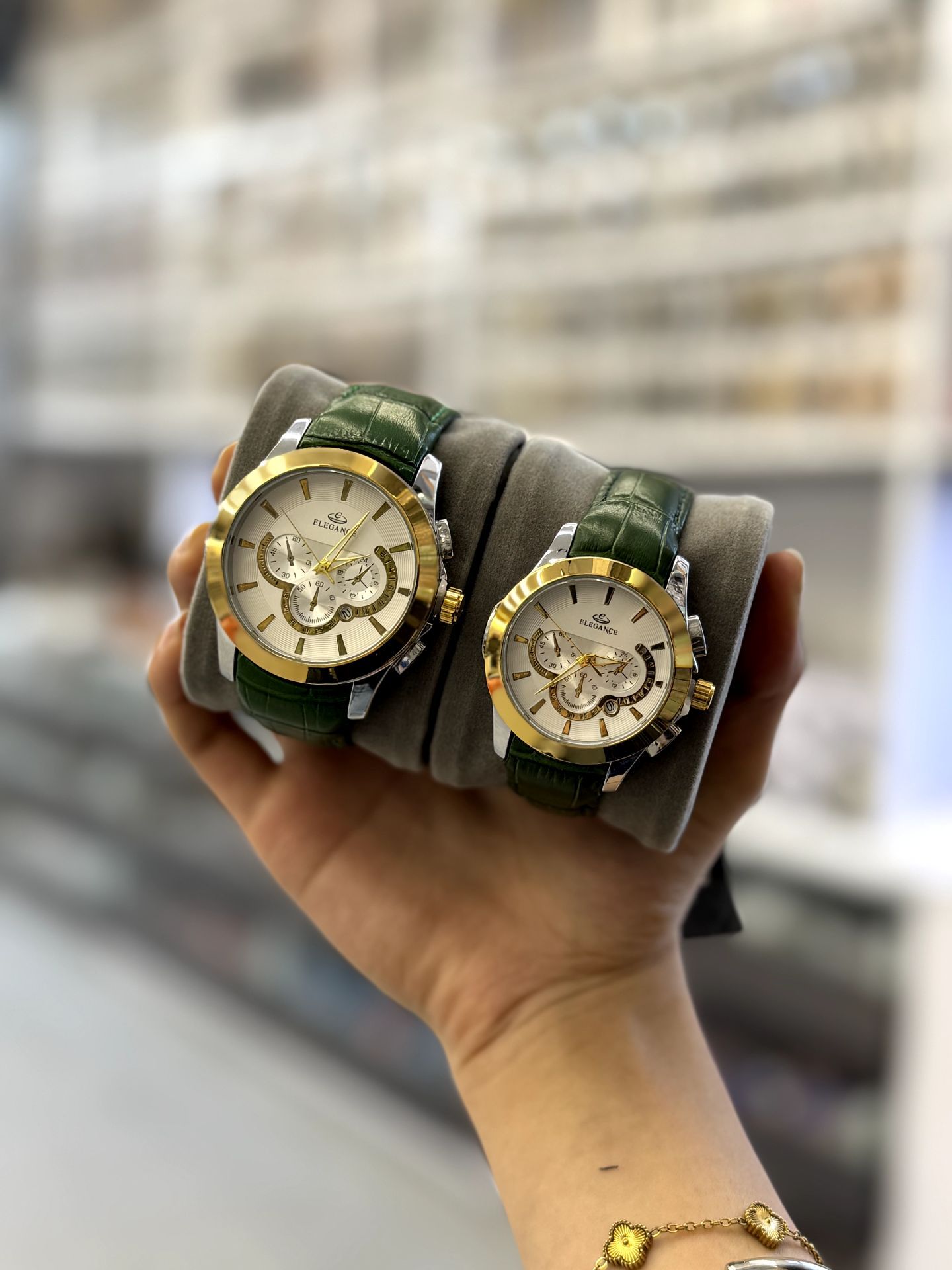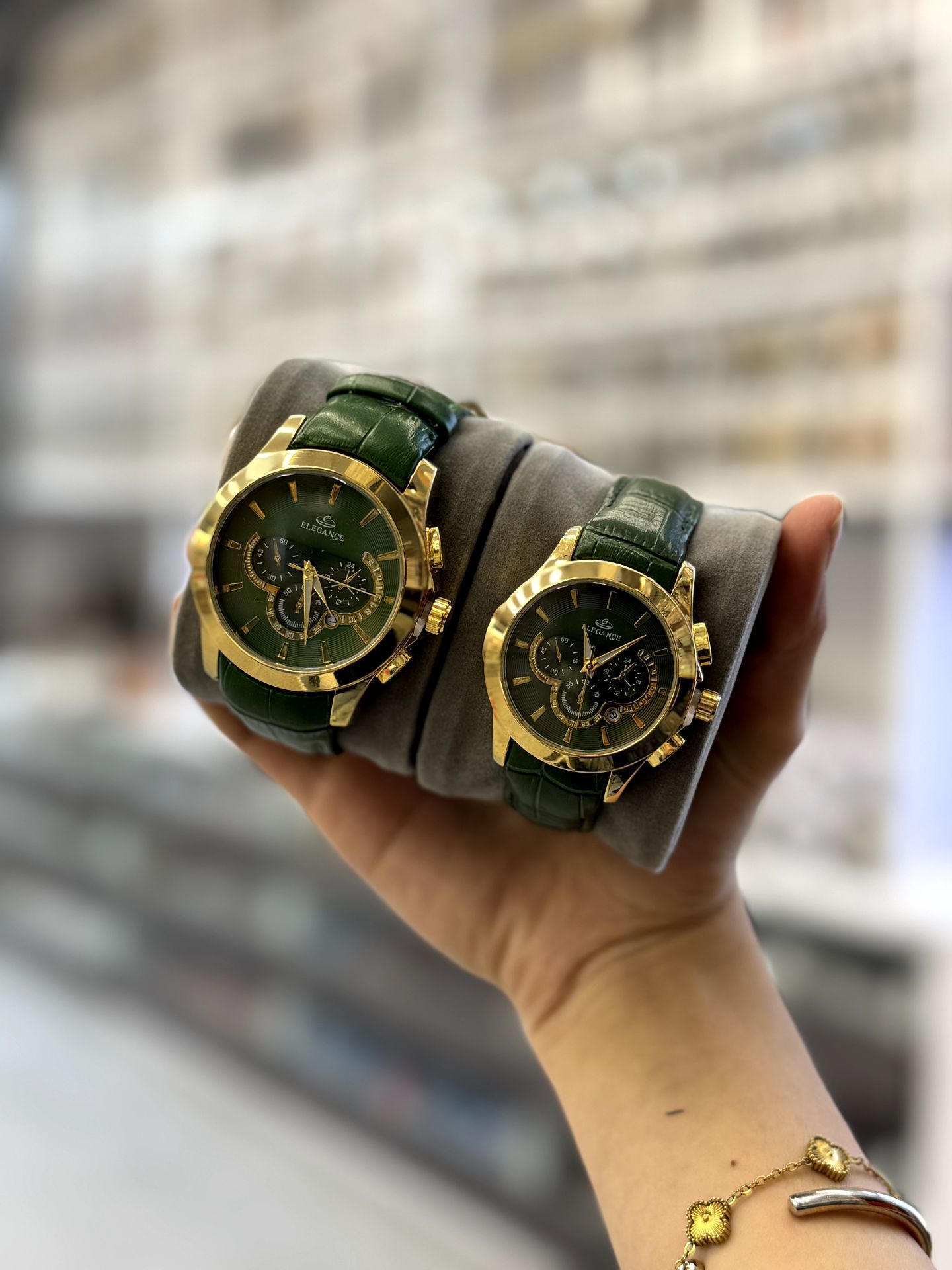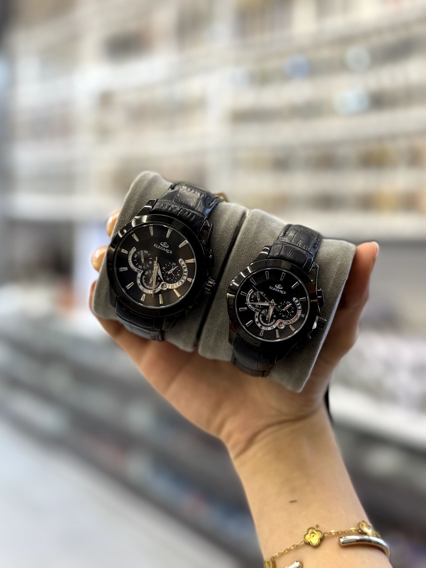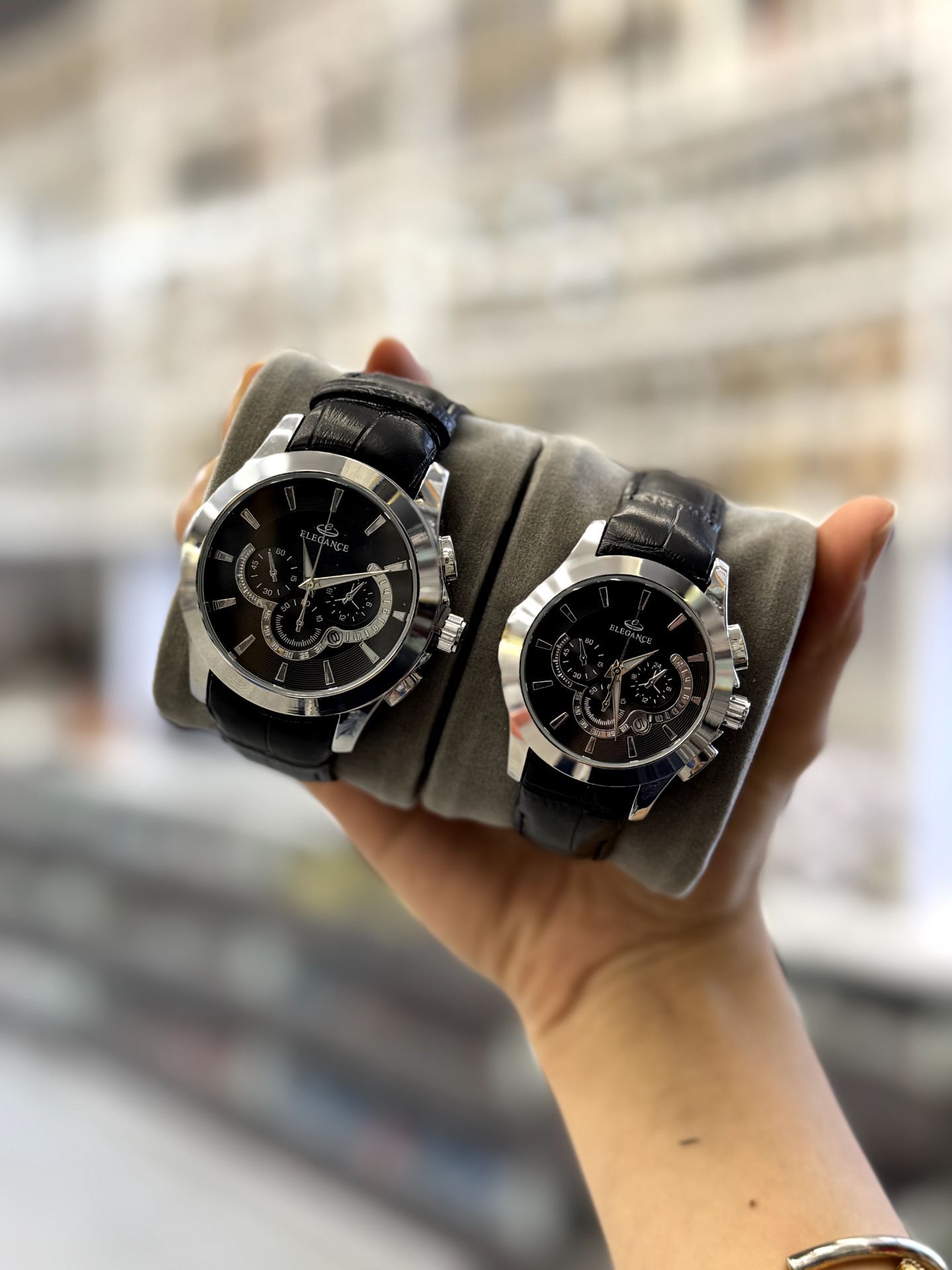 ست ساعت زنانه و مردانه بند چرم مارک الگانس تقویم فعال