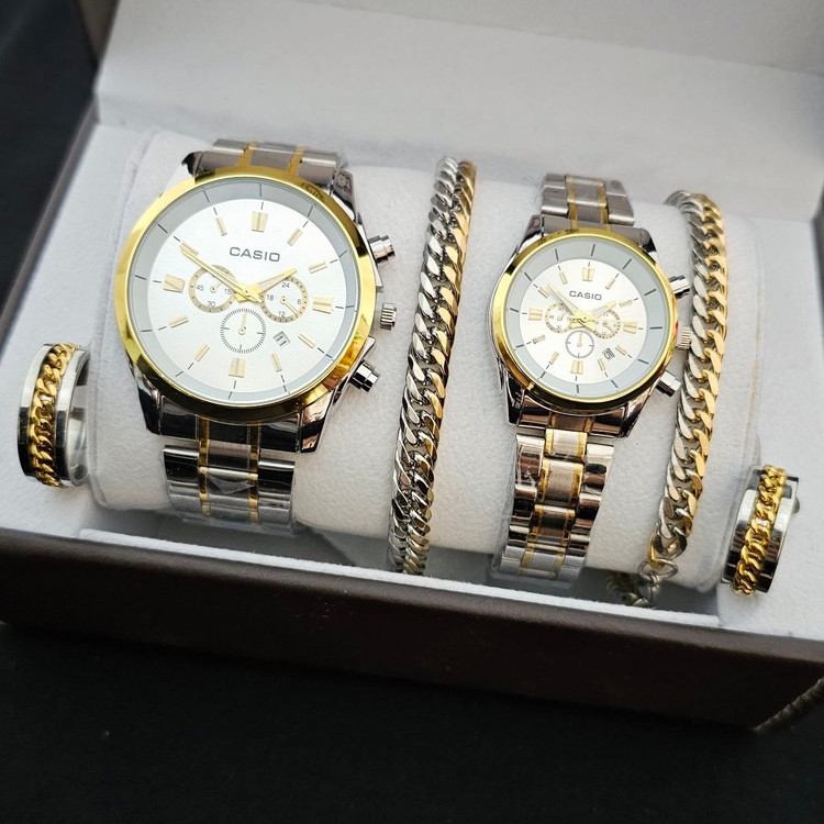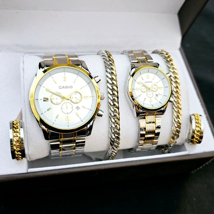 ست ساعت زنانه ومردانه برند کاسیو Casio رنگ ثابت پرفروش همره با دستبند وانگشتر