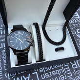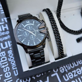 ساعت ست مردانه بند استیل رنگ ثابت همراه دستبند و گردنبند و انگشتر کارتیر