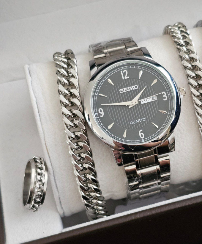 دارای: دوعدد دستبند وانگشتر وساعت