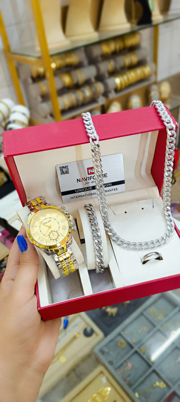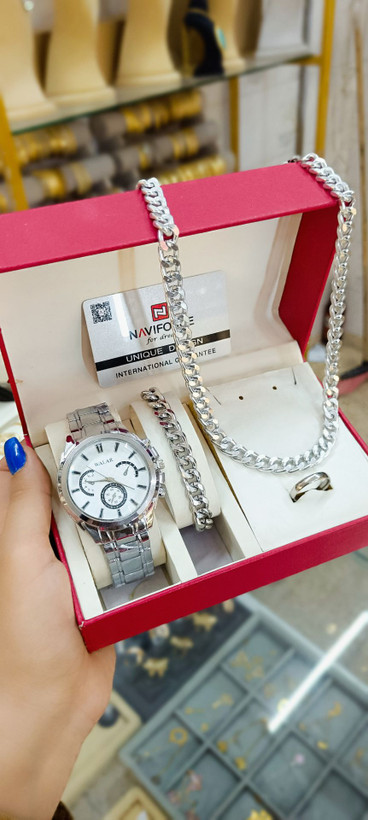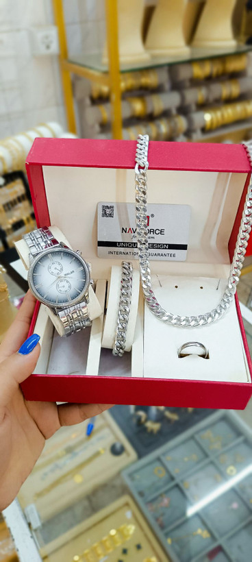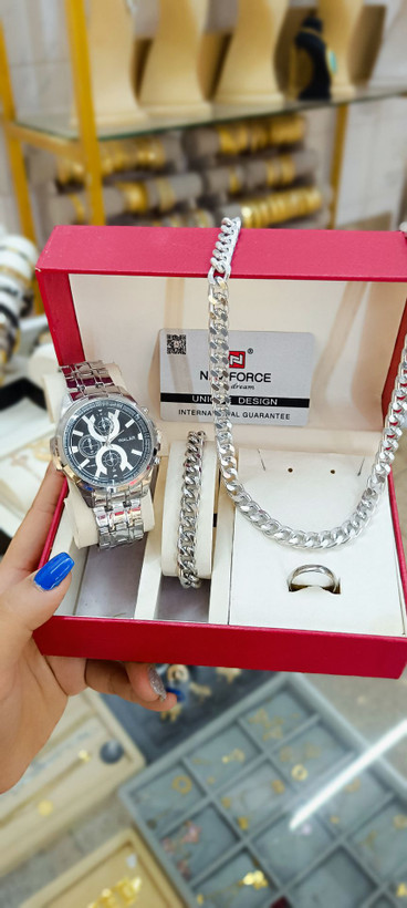 ست مردانه ساعت شیک همراه دستبند وگردنبند وانگشتر والار خاص و برند