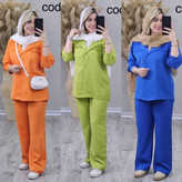 ✅فری از 36 تا 46 - قد تونیک حدود 70 - دورسینه حدود 110 - قد استین از یقه حدود 55 - قد شلوار حدود 100 - کمرکشی و تا حدود 106 کشسانی دارد