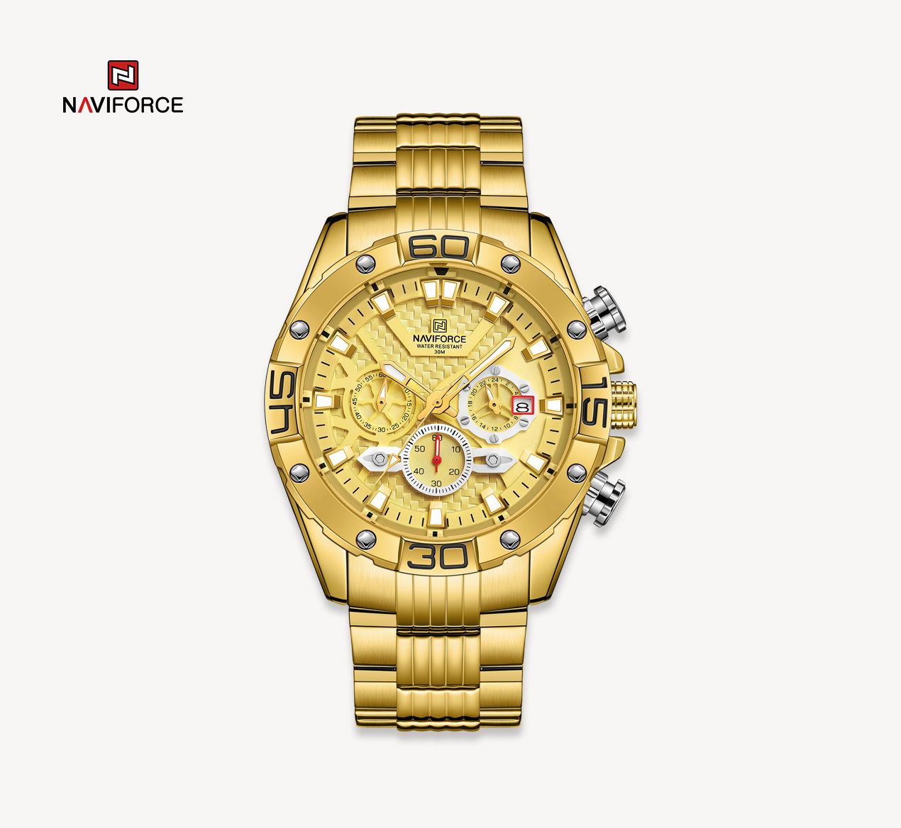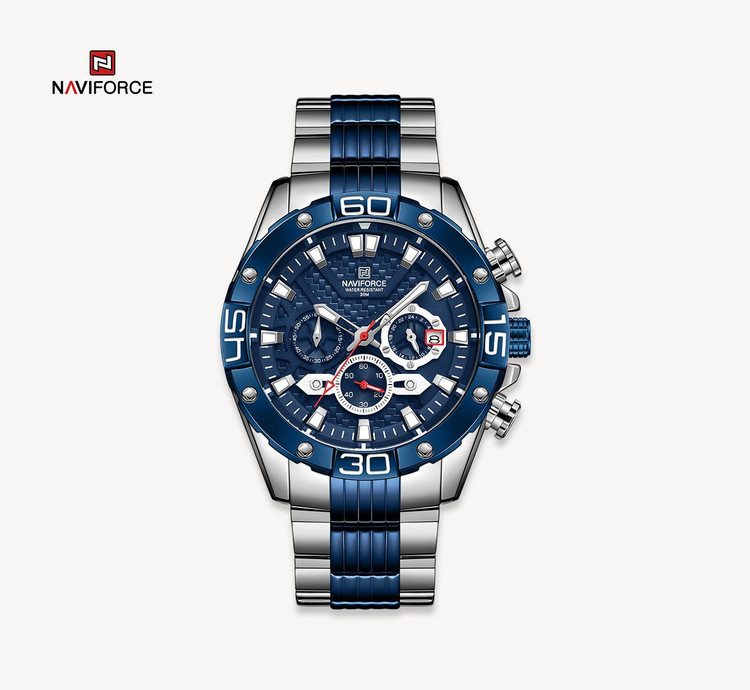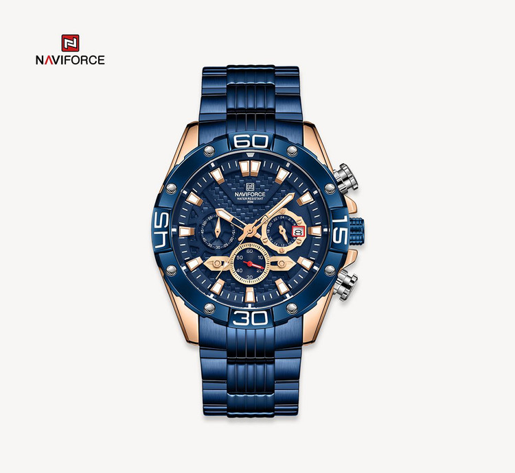 ساعت سه موتوره مردانه برند NAVIFORCE 8019 دارای طراحی جذاب و دلنشین .