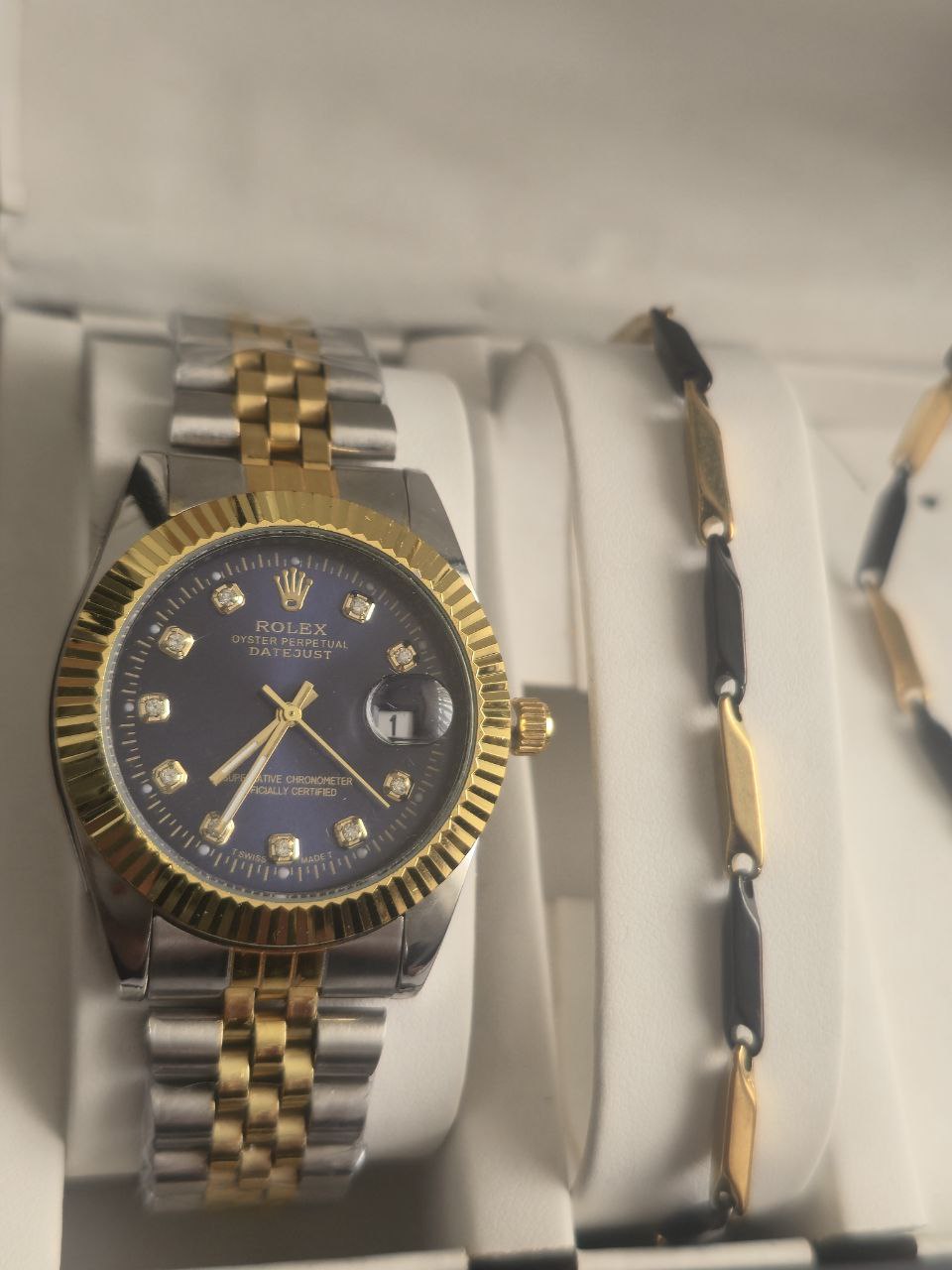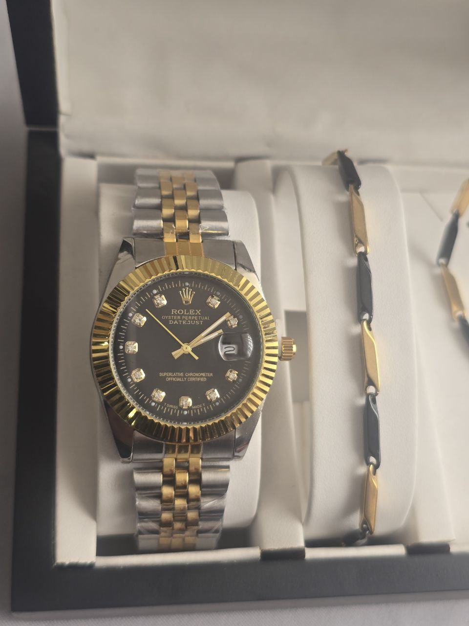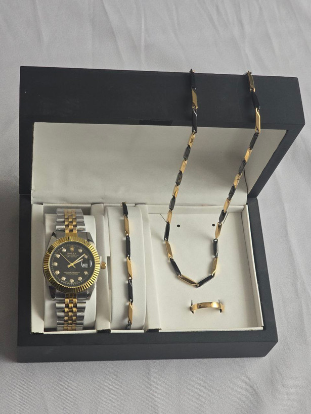 ست مردانه ساعت و دستبند و گردنبند استیل و حلقه( سایز ۶ تا ۱۰)