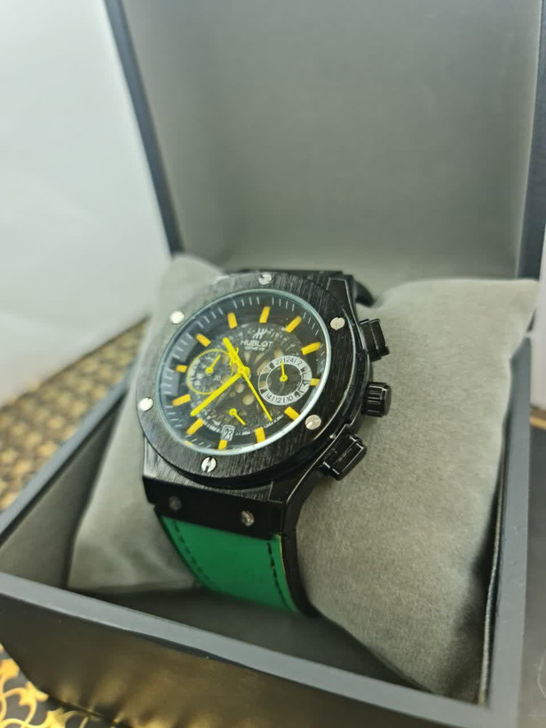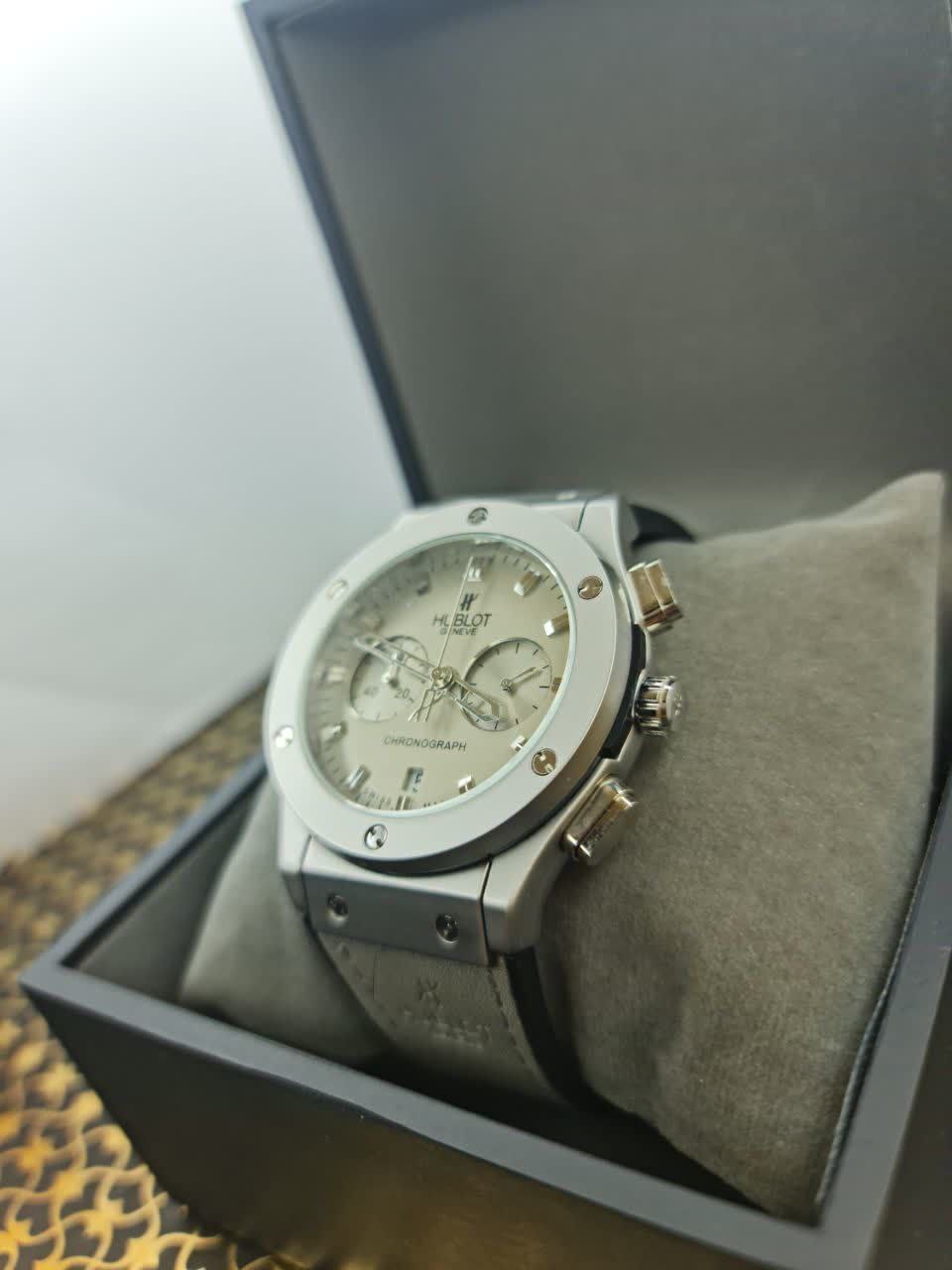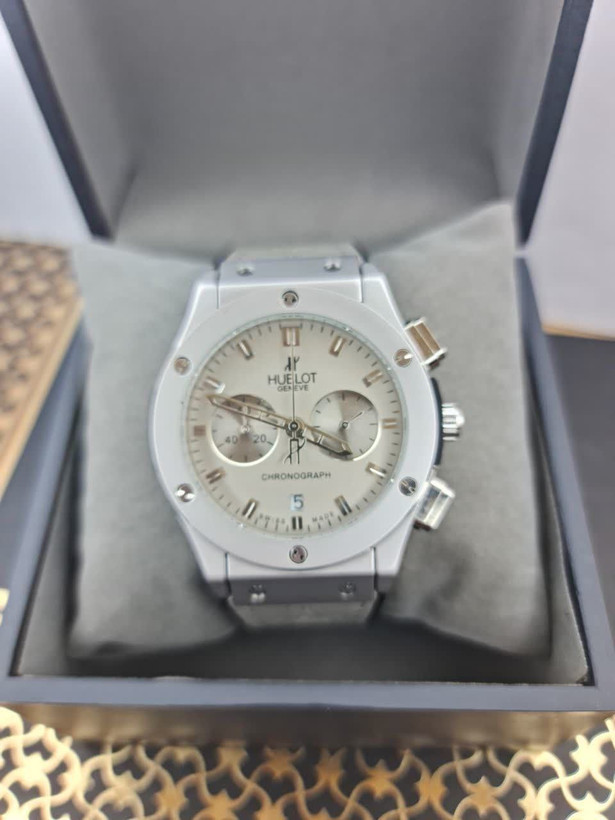 اطلاعات محصول :قفل کلیپسی هابلو ضدآب دارای روز شمار بند رابر با روکش چرم قاب رنگ ثابت سه موتور فعال کرنوگراف