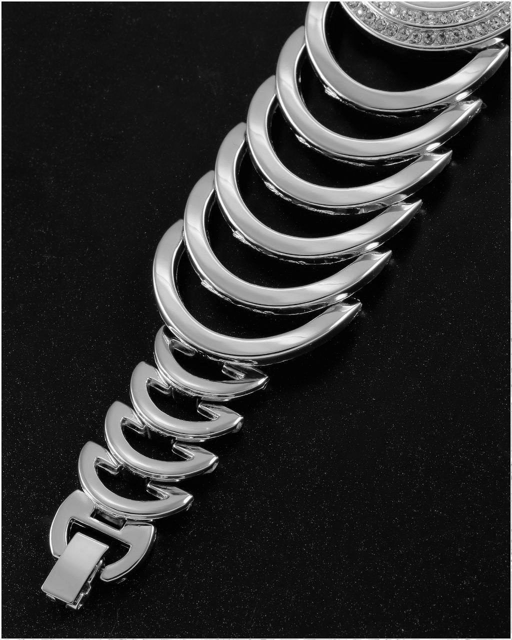 اطلاعات محصول :قفل دستبندی موتورکوارتز قاب نگینی بند دستبندی پهن