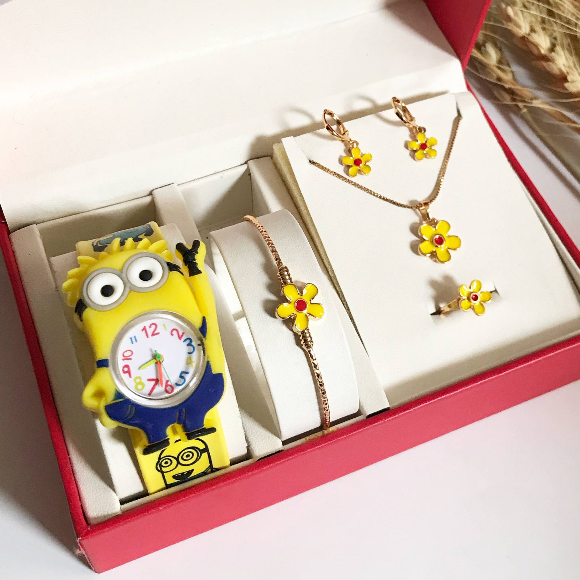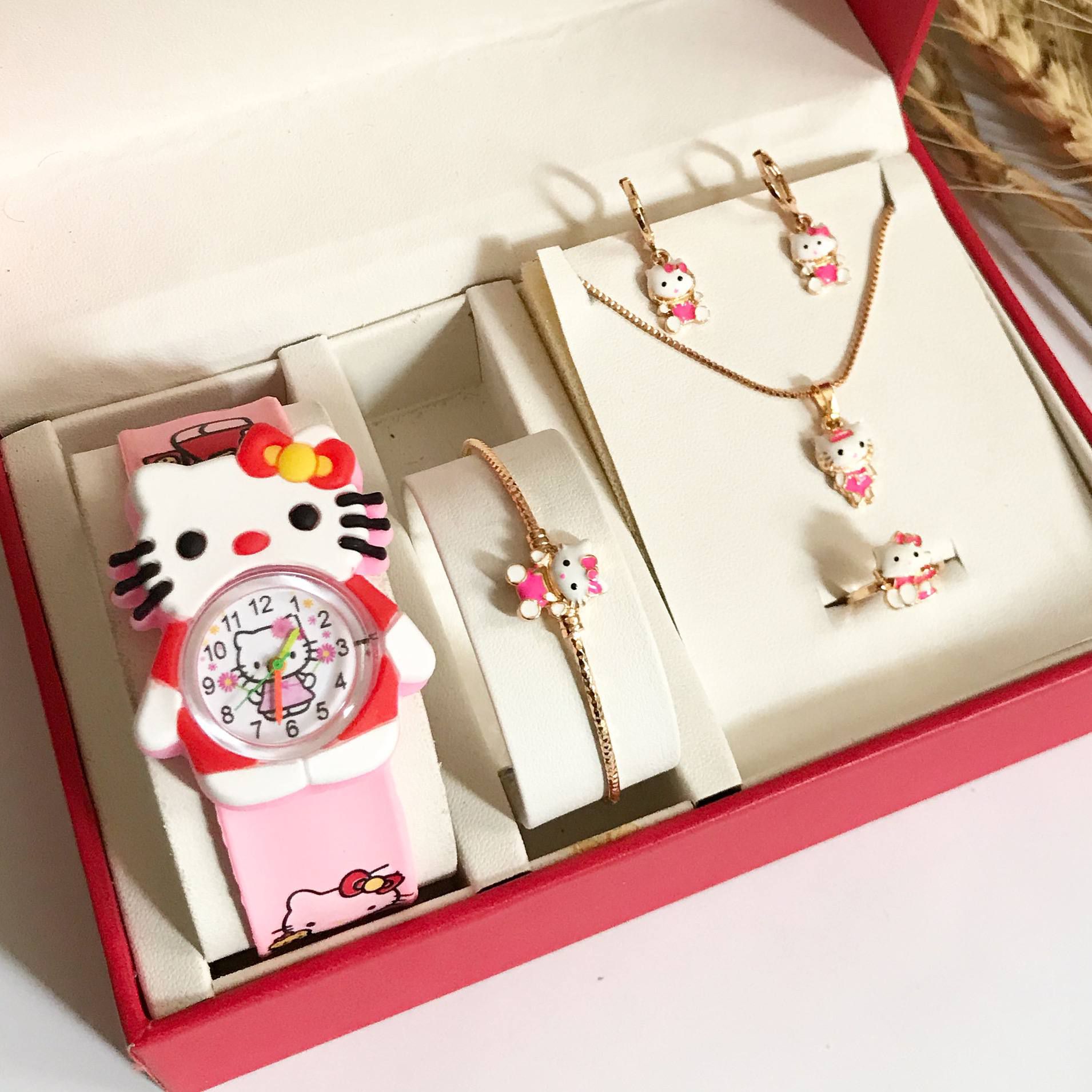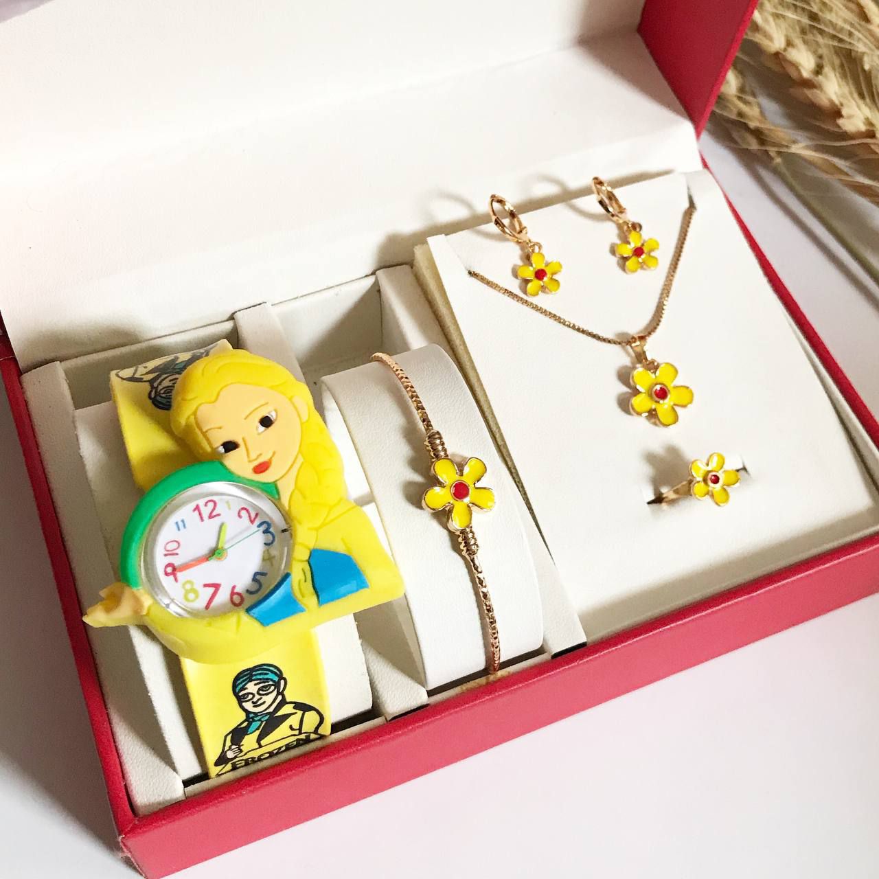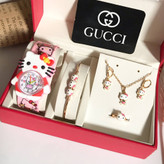 #ست کامل بچگانه طرح طلا با ساعت 🔻رنگ ثابت و ضد حساسیت 🔻بسیار زیبا