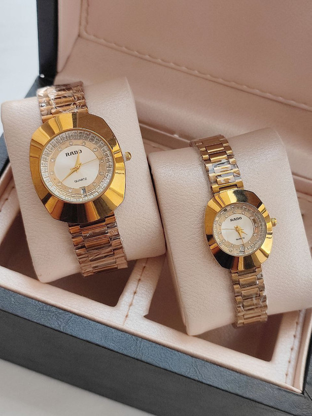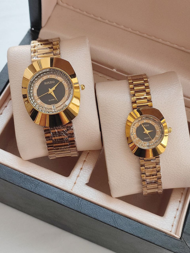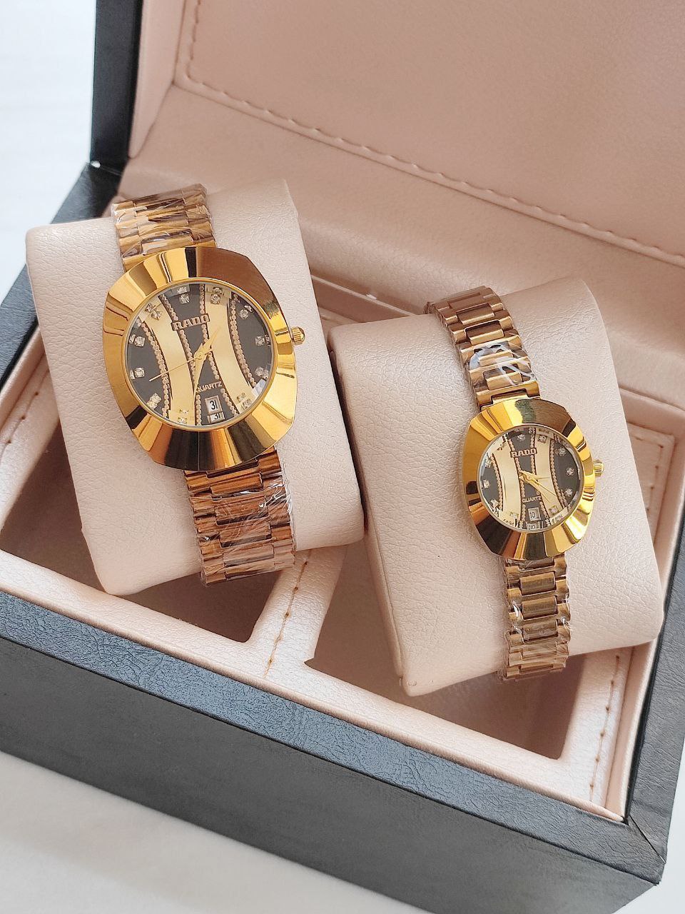 مشخصات: ست ساعت مردانه زنانه رادو RADO m4505006 قفل ضامن دار دارای روز شمار موتور با کیفیت دارای اعداد نگینی کیفیت بسیار خوب همراه با جعبه شیک