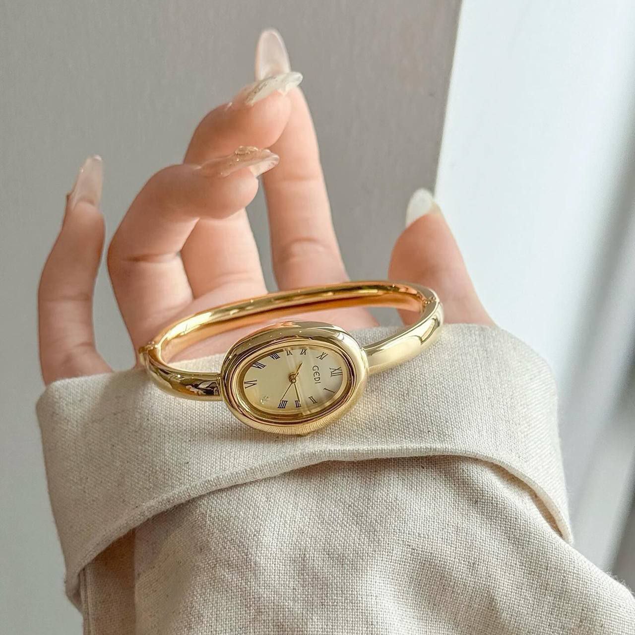 ساعت النگویی Gedi🔥 کار شرکتی پرطرفدار زنانه و دخترانه برند: GEDI مدل: 92001 رنگبندی: طلایی و سیلور فری سایز(مناسب تا سایز ۲/۵ زنانه) قطر داخلی حدود ۶ سانت ضد اب 3atm قطر صفحه ۲۱ میل رنگ ثابت بدون ایجاد حساسیت موتور کوارتز صفحه سفید