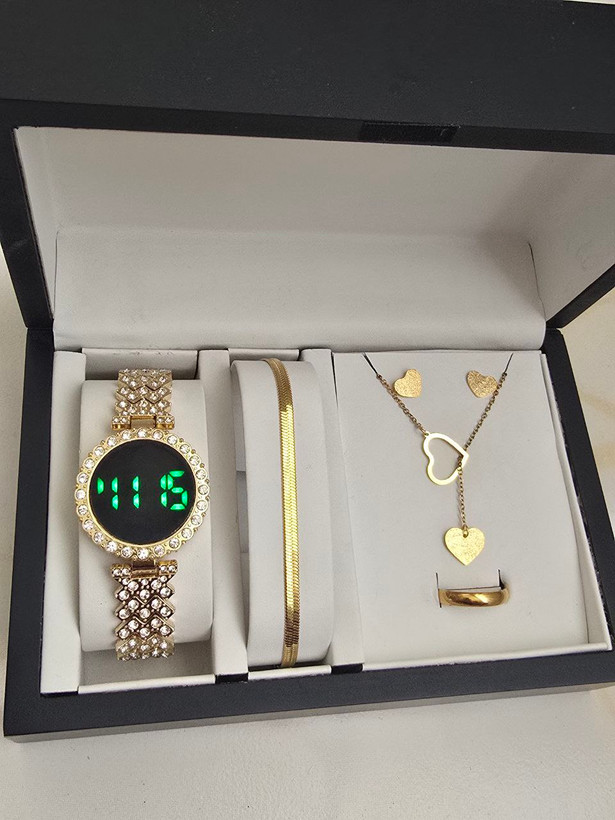 ست ساعت LED نیم ست قلبی استیل و دستبند ماری و رینگ زنانه
