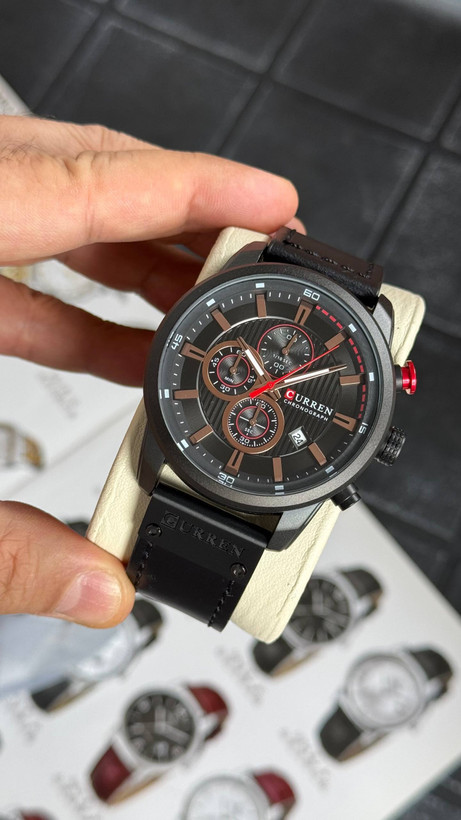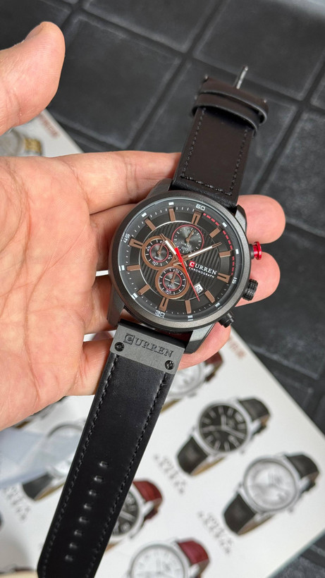 اطلاعات محصول :قطر 45 میلی متر رنگ ثابت قاب استیل بند چرم شیشه ضدخش روز شمار دارد ضدآب 3ATM با جعبه اورجینال