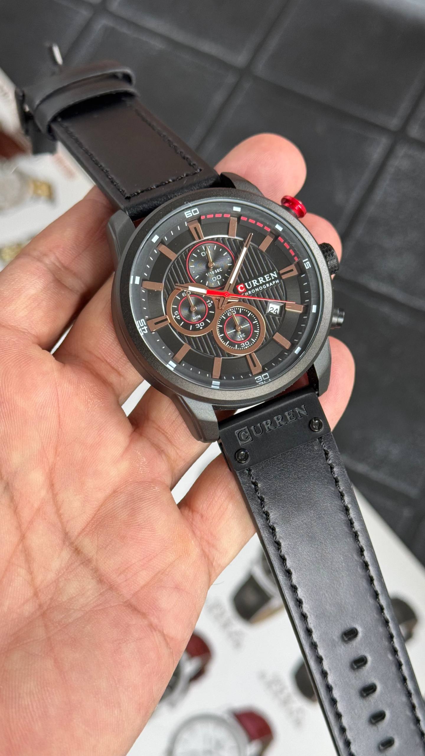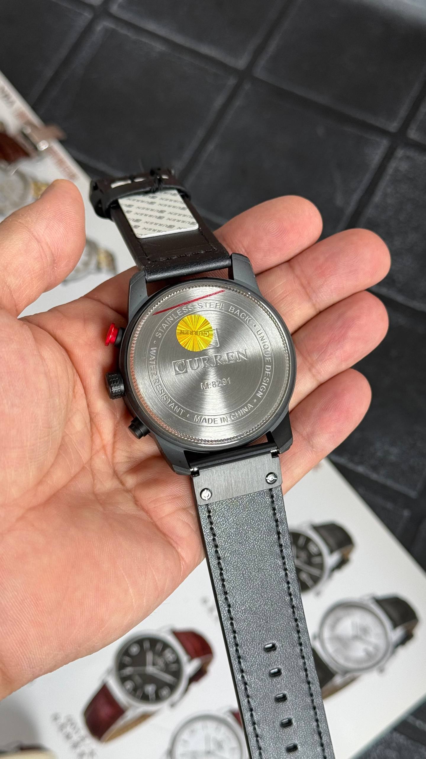 اطلاعات محصول :قطر 45 میلی متر رنگ ثابت قاب استیل بند چرم شیشه ضدخش روز شمار دارد ضدآب 3ATM با جعبه اورجینال