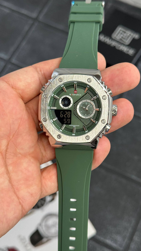 اطلاعات محصول :اور جینال موتور ژاپن دو زمانه رنگ ثابت ضدآب بند سیلیکونی کیس استیل نمایش ایام هفته و روز شمار بک لایت آلارم کرنومتر