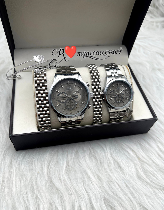 ست ساعت و دستبند زوج صفحه طوسی خیلی خاص از برند الگانس👌🏻😍