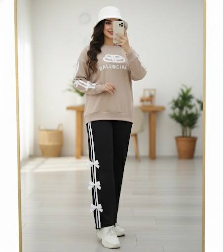 ✅فری از 36 تا 46 - قد بلوز حدود 69 - دورسینه حدود 112 - قد استین از یقه حدود 61 - قد شلوار حدود 105 - کمرکشی و تا حدود 120 کشسانی دارد