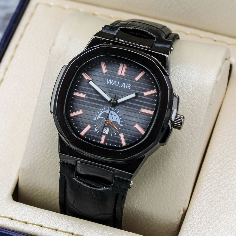 ساعت مچی مردانه WALAR ✅تقویمدار، رنگ بندی ✅بند چرمی، قفل کمربندی ✅جعبه کادویی و باطری رایگان
