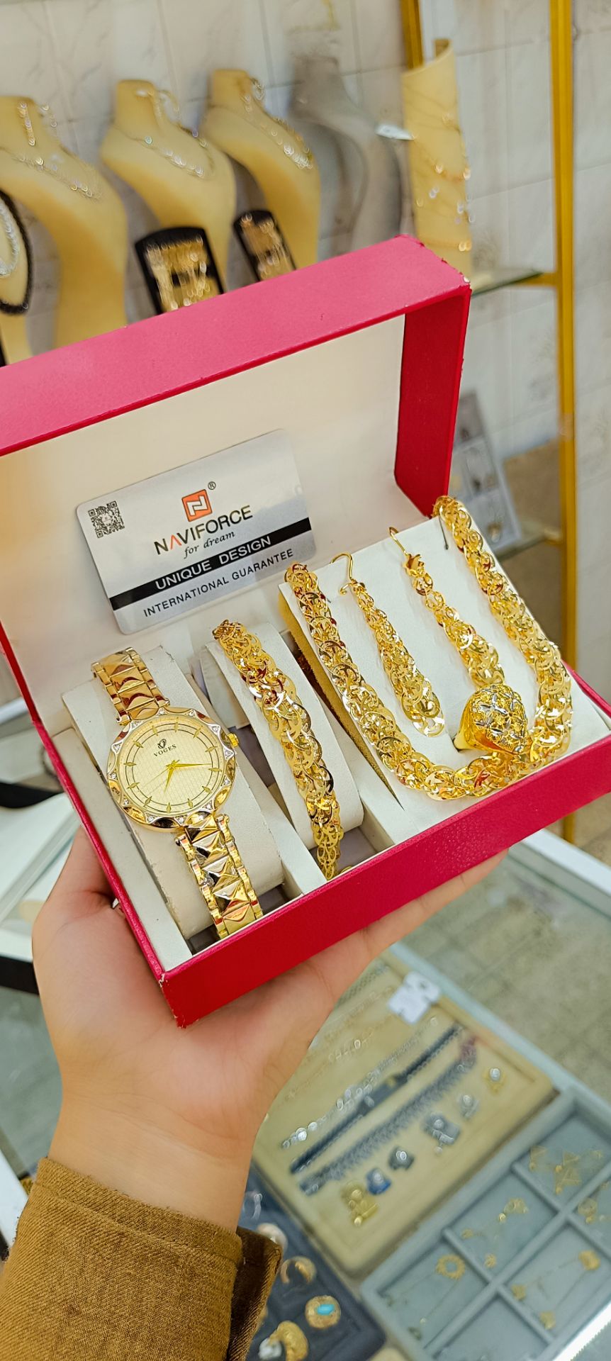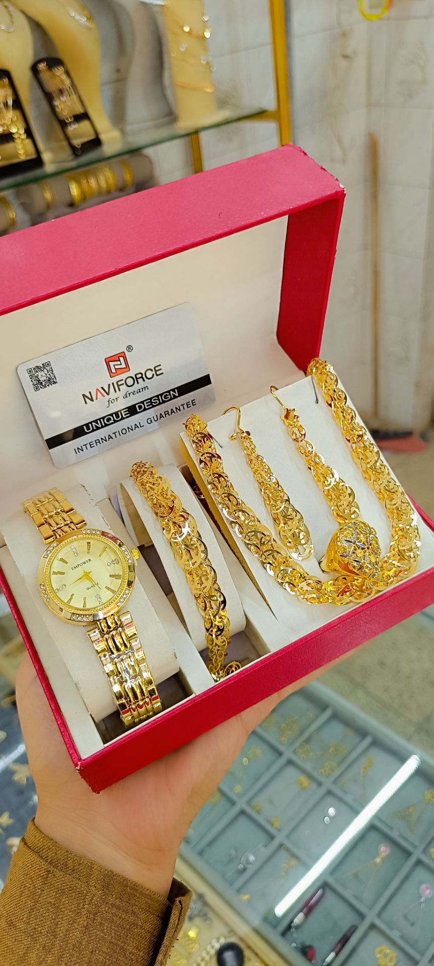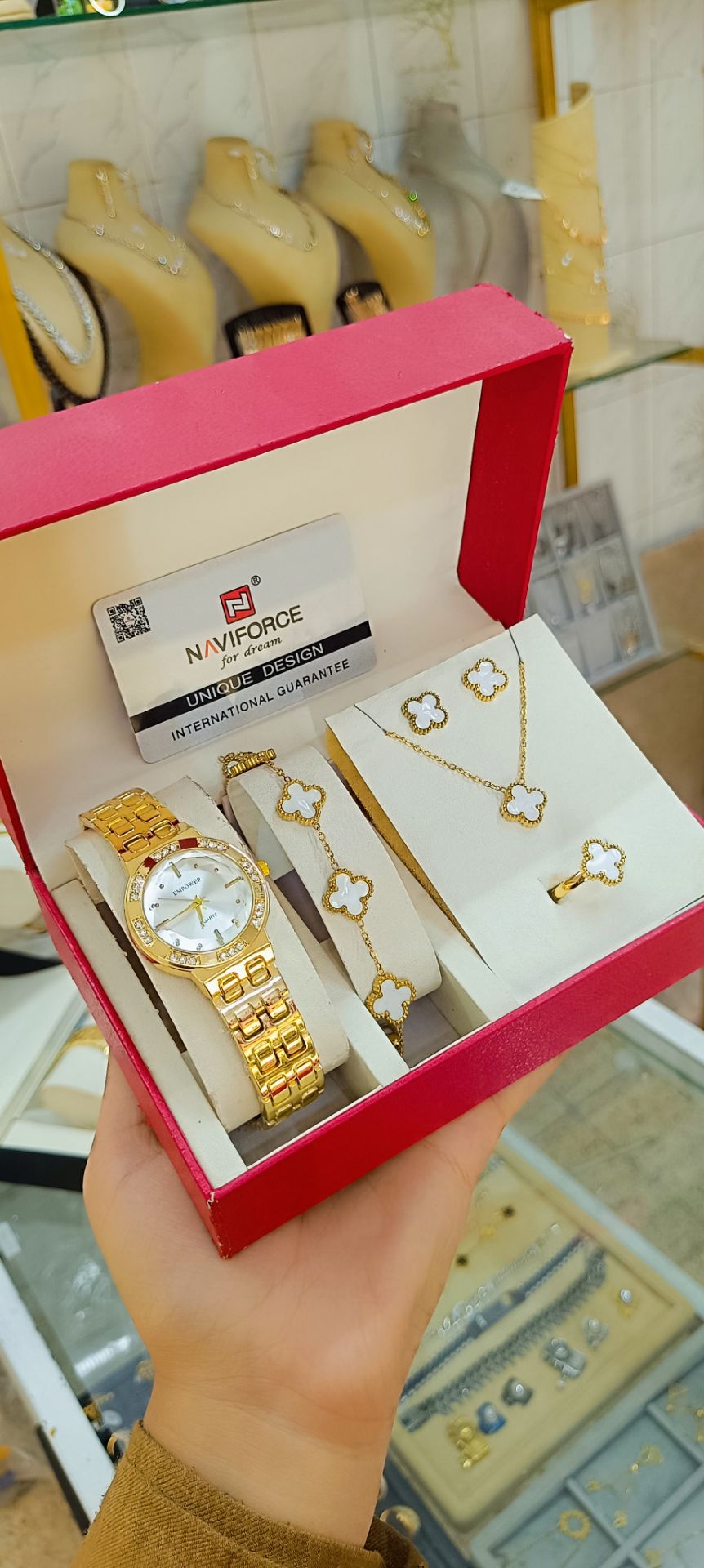 ست ساعت و سرویس مارک امپاور ♦️ست زنانه ♦️ساعت نگیندار ♦️نیمست یزدی ♦️رنگ ثابت همراه انگشتر طلا روس