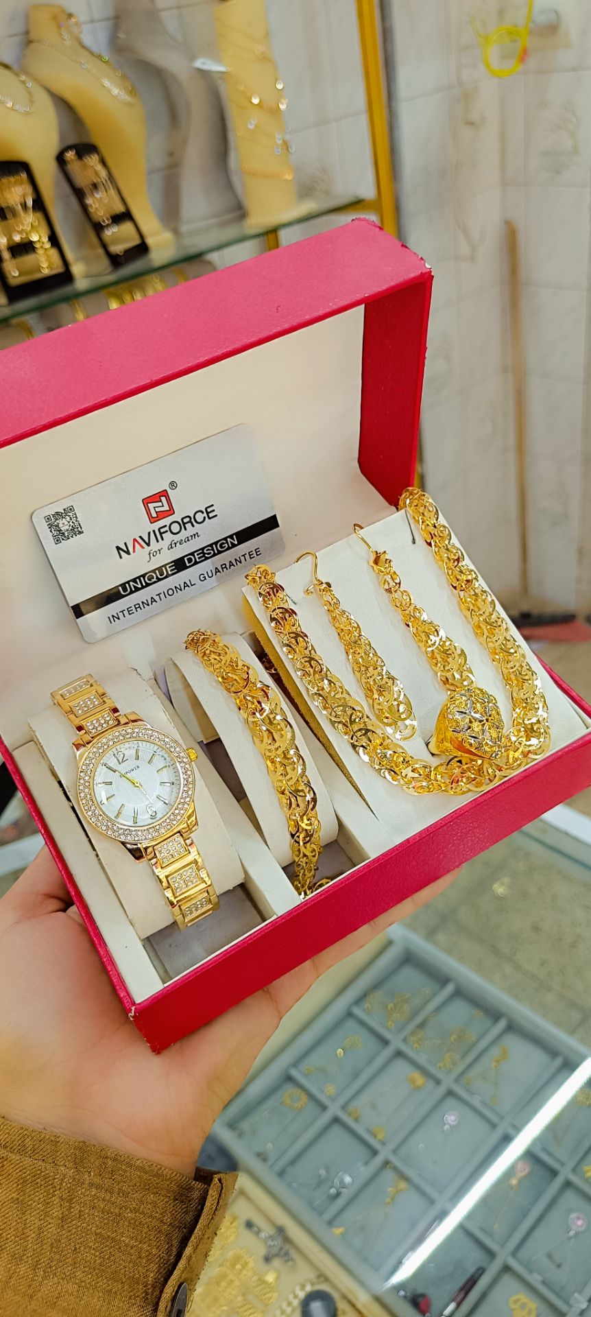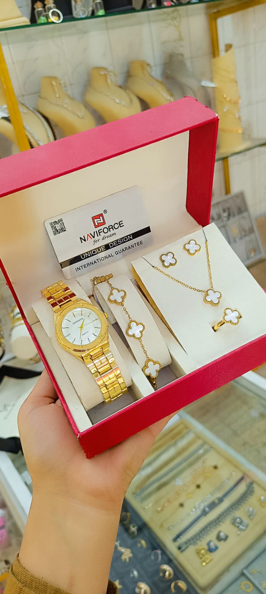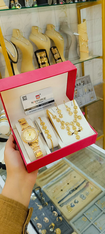 ست ساعت و سرویس مارک امپاور ♦️ست زنانه ♦️ساعت نگیندار ♦️نیمست یزدی ♦️رنگ ثابت همراه انگشتر طلا روس