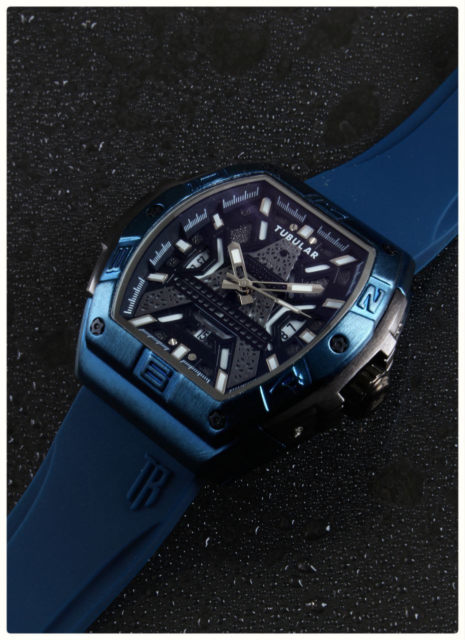 ساعت مچی مردانه پیشنهاد ویژه Tubular اورجینال For Men موتور شرکتی درجه A++ دارای روزشمار قاب استیل حک برجسته شیشه کریستال سافایر قفل سگکی بند Pu اورجینال ضدآب 3Atm