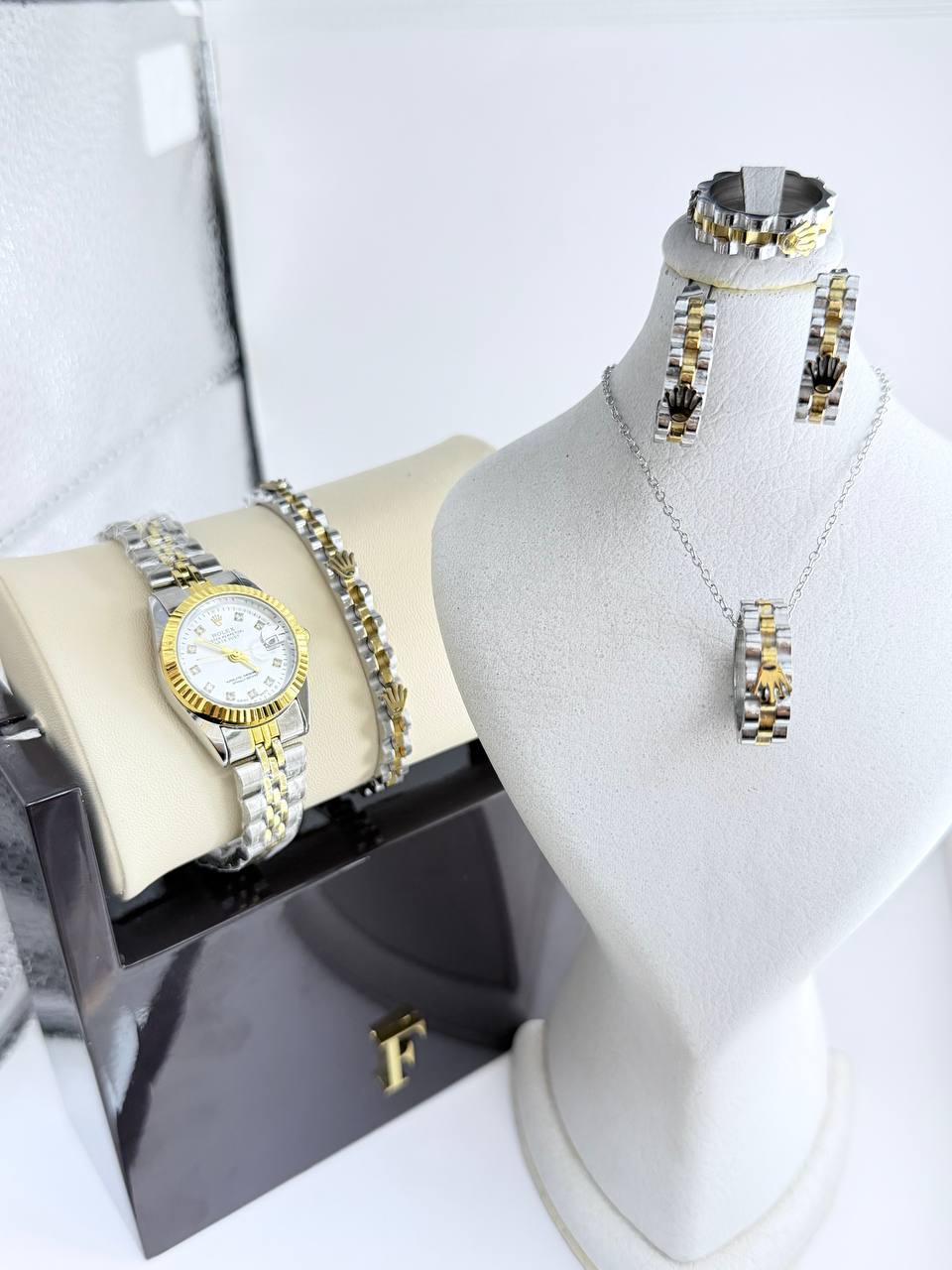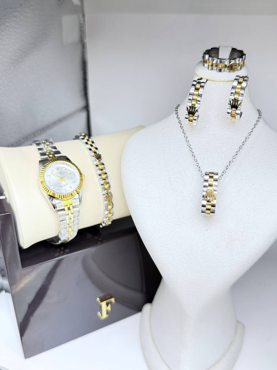 دستهبندی: ساعت زنانهبرچسبها : خاصشیکمشخصات: ساعت رولکس تقویم دار طرح دیجاست و تمام ست کامل رولکس تاج دار گردبند و گوشواره و حلقه و دسبند طراحی جدید و خاص
