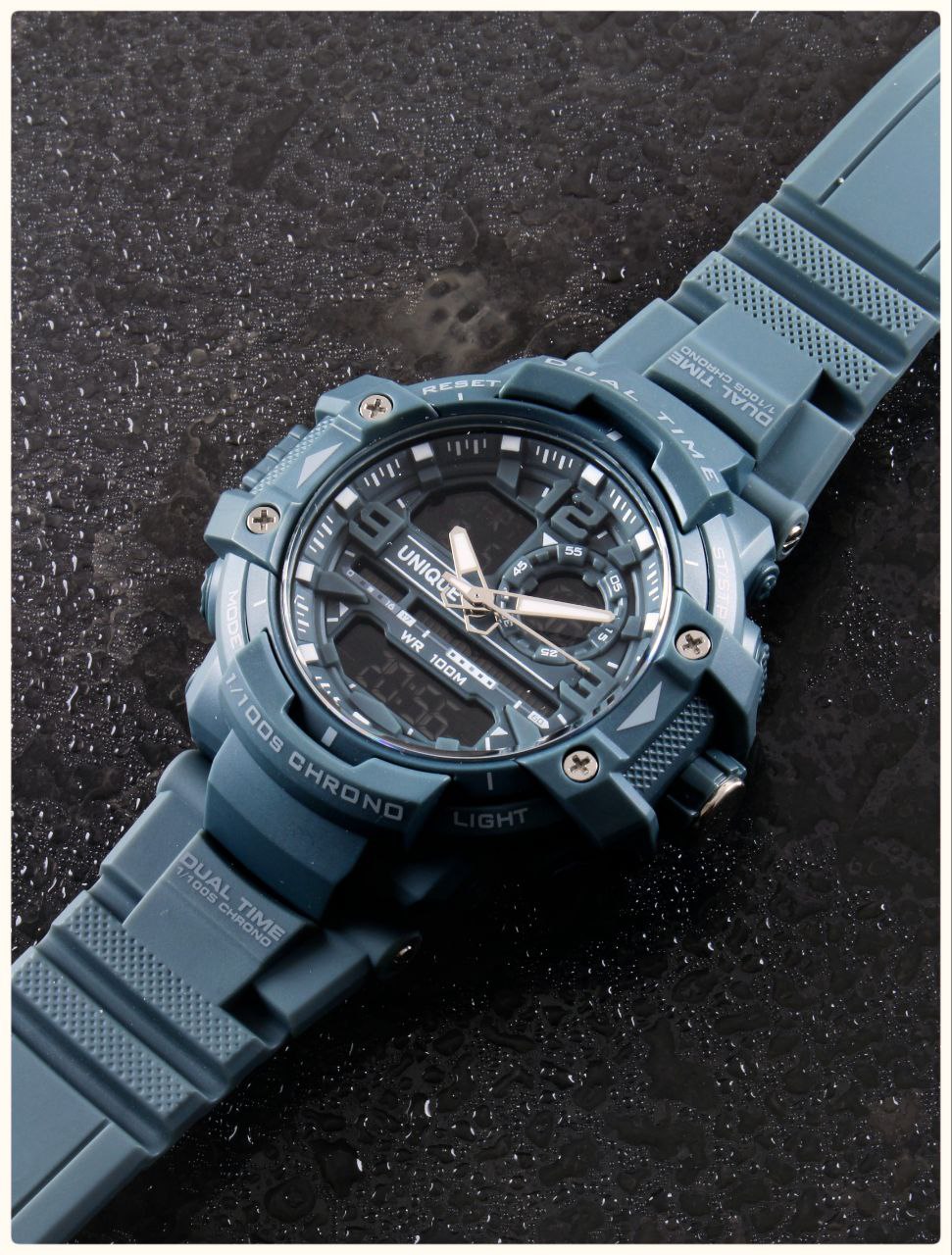 ساعت مچی مردانه Unique Water Resistant ❌ساعت ضدآب استخری از برند اورجینال "یونیک" موتور ژاپن A++ دو زمانه بند رابر آنتی آلرژی اصلی قفل سگکی ❌امکانات: ♦️نمایش ساعت بصورت آنالوگ(عقربهای) و دیجیتال ♦️دارای آلارم ♦️چراغ دیدشب ♦️نمایش کامل تاریخ (سال ماه و هفته) ♦️محاسبه کرنومتر صفحه ضدخش ضدآب و ضربه و ...