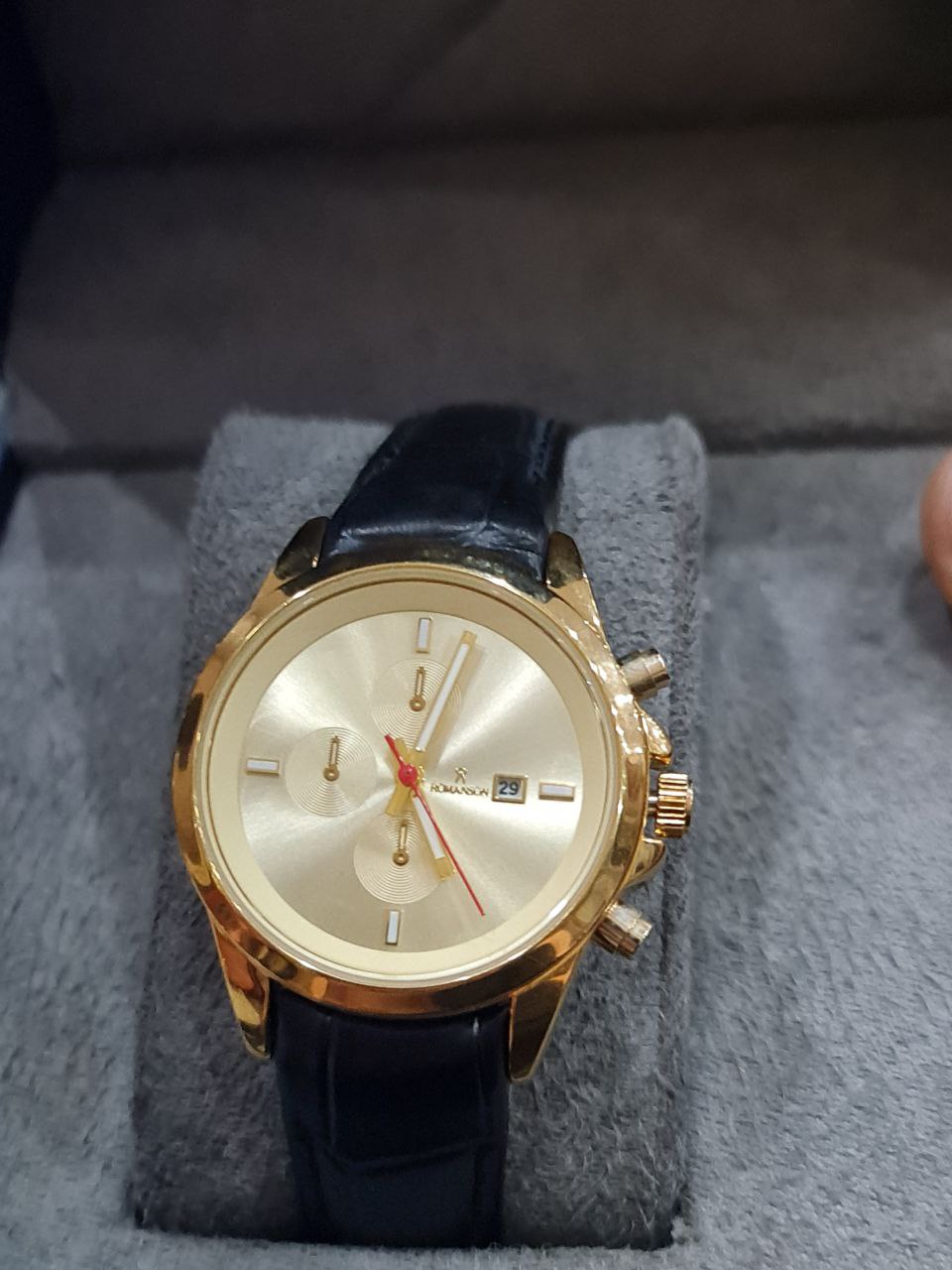 مشخصات: ROMANSON ELEGANCE High quality👌 زنانه سفارشی با کیفیت عالی طرح سه موتور دارای روز شمار قفل کلیپسی ضدآب بند چرم اصل فیکسی موتور شرکتی قاب رنگ ثابت