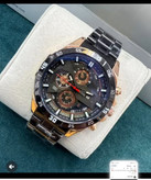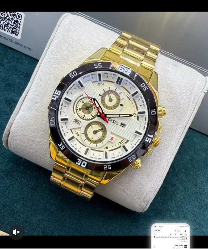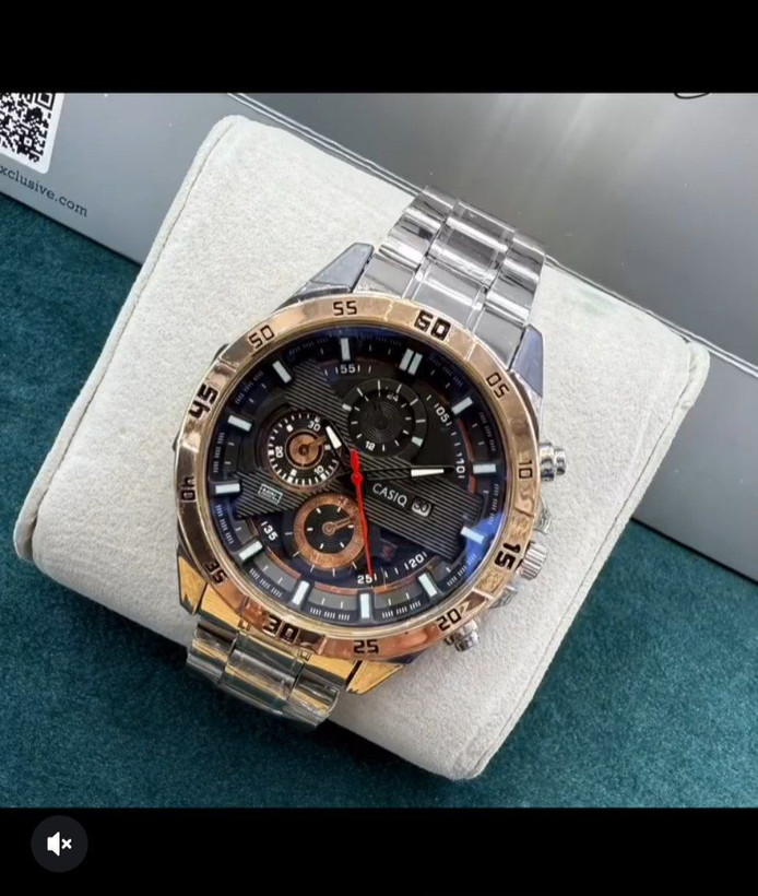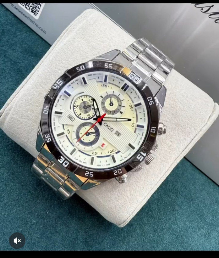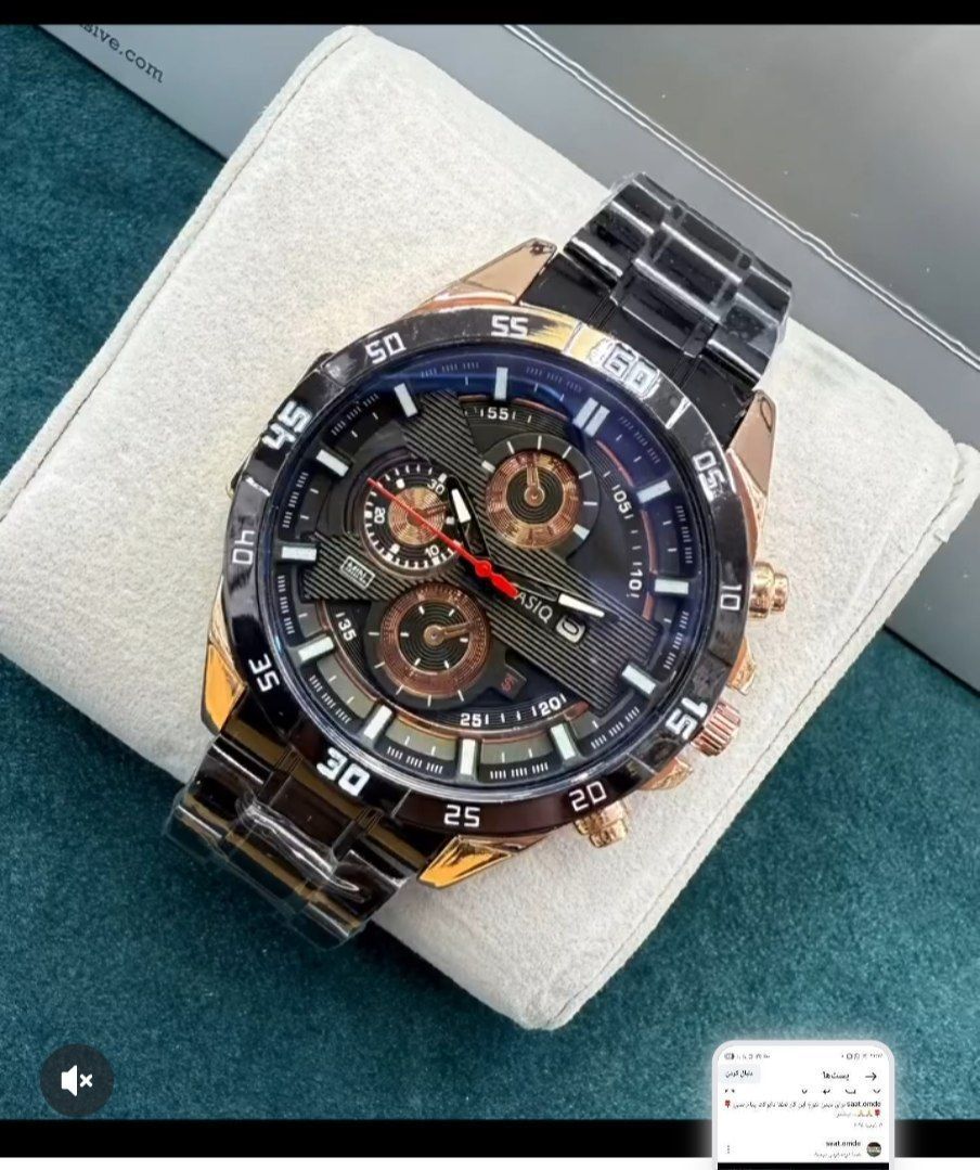 مشخصات: casio Edifice For men طرح ۳ موتوره موتور کوارتز دارای روزشمار بند استیل رنگ ثابت فوق العاده سنگین و با کیفیت ضدآب در حد دست شستن قفل کلیپسی قاب پشت حک شده قطر صفحه ۴۵ میل مناسب ستهای اسپرت و کلاسیک آقایان