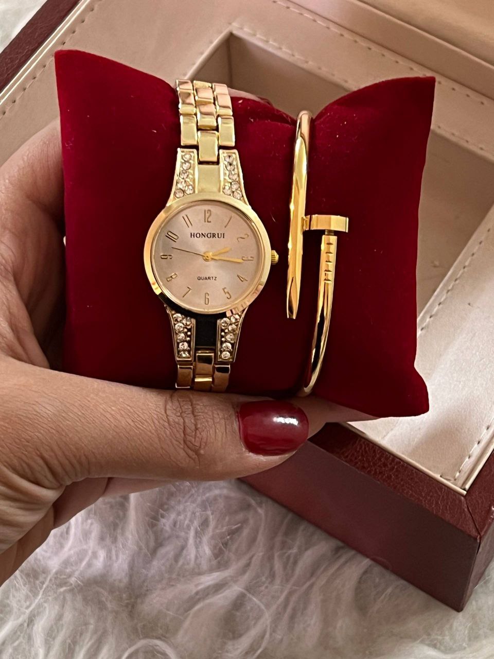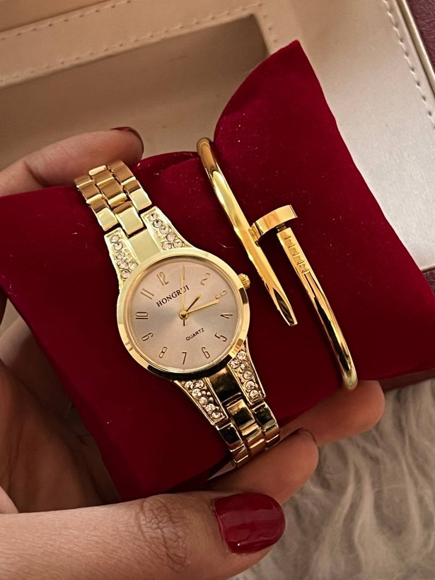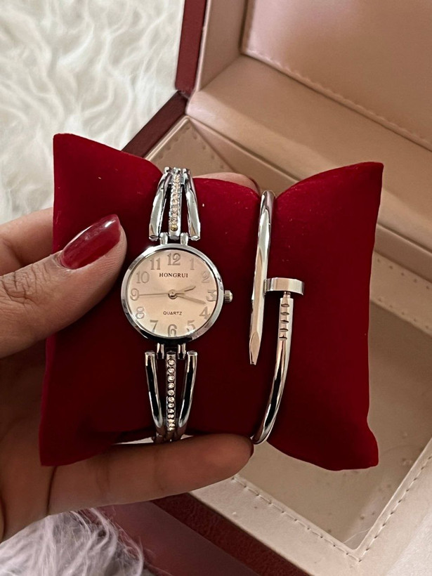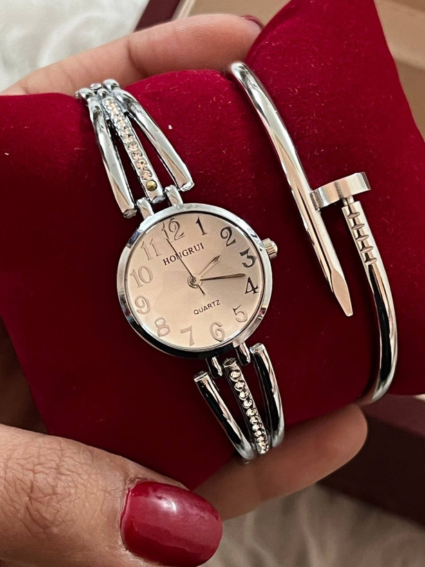ساعت مچی ست زنانه Hongrui ⌚️ ✔️ست دستبند و ساعت ✔️ساعت برند هانگری ✔️بند استیل ✔️کیفیت عالی ✔️دستبند بنگل طرح میخ ✔️کیفیت عالی ✔️ارسال به همراه جعبه