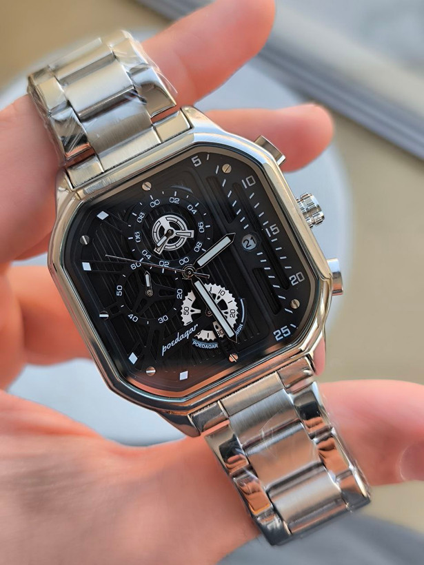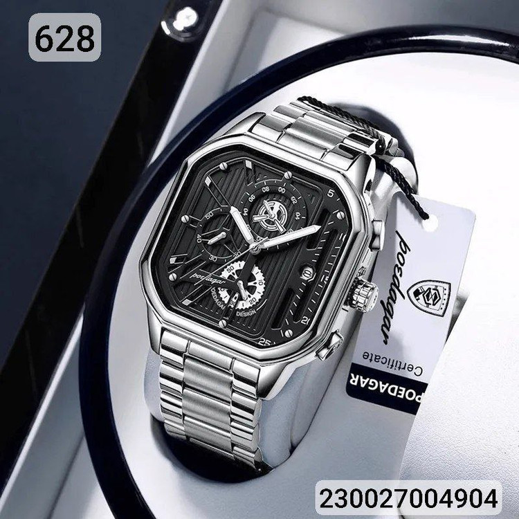 مشخصات: ساعت مردانه فلزی poedagar مدل 628- 230027004904 دارای تقویم قفل ضامن دار سه موتوره فعال قاب و بند استیل کیفیت بسیار عالی همراه با جعبه شیک