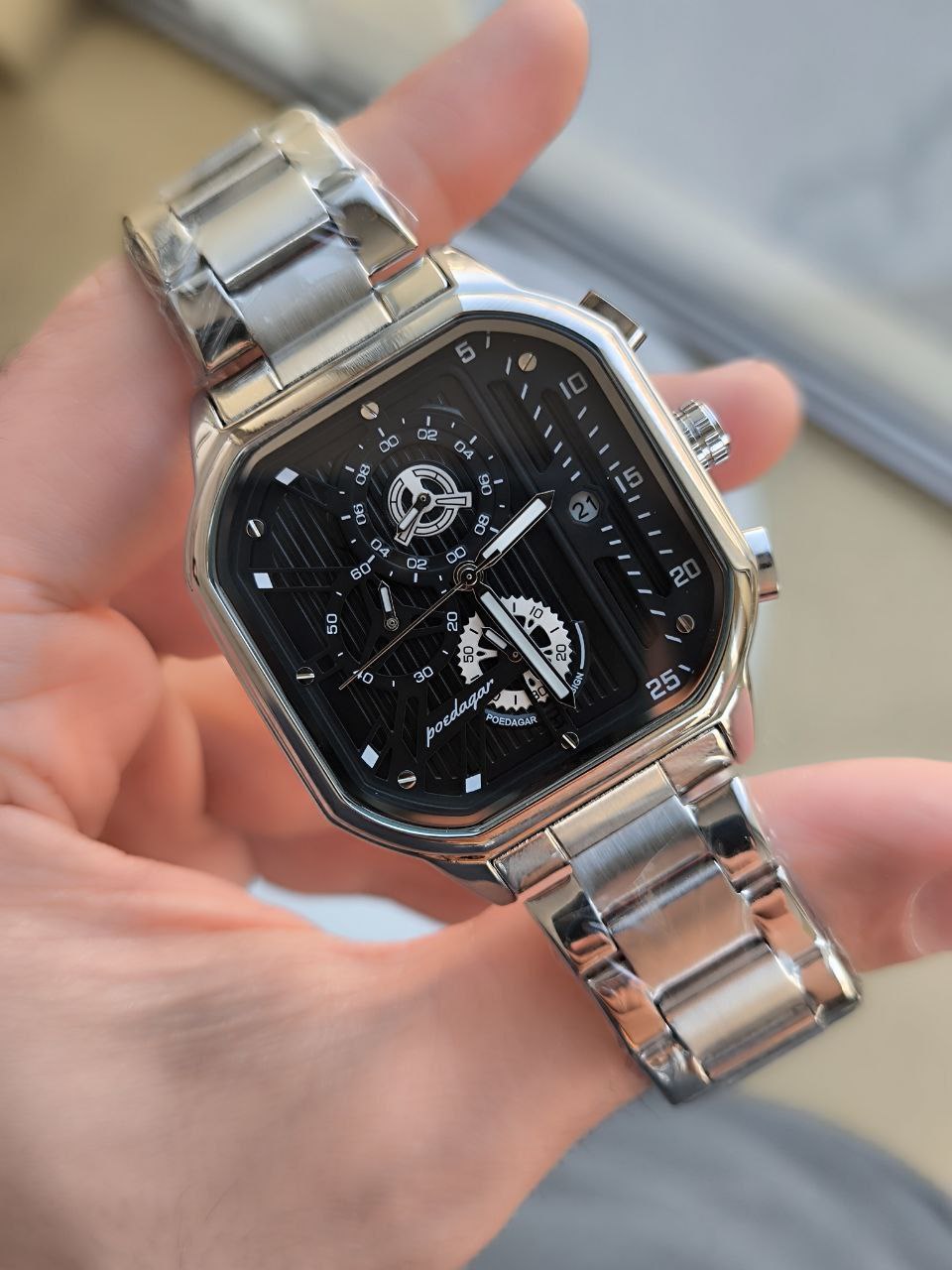 مشخصات: ساعت مردانه فلزی poedagar مدل 628- 230027004904 دارای تقویم قفل ضامن دار سه موتوره فعال قاب و بند استیل کیفیت بسیار عالی همراه با جعبه شیک