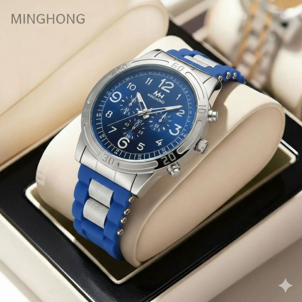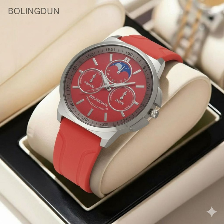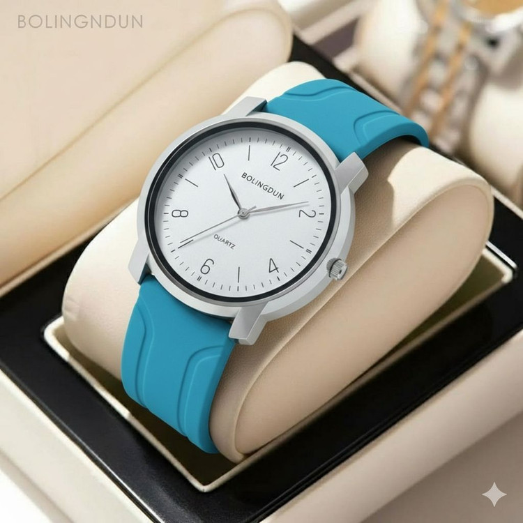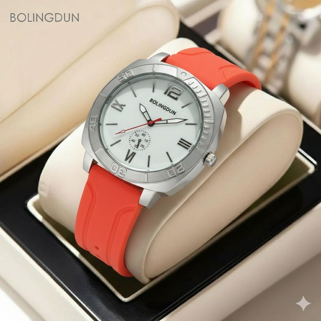 ساعت مچی مردانه کد 2299 مردانه ژله ای برند BOLINGDUN قفل سگگی باکیفیت طراحی خاص و زیبا بند ژله ای صفحه سفید موتور کوارتز طرح سه موتوره