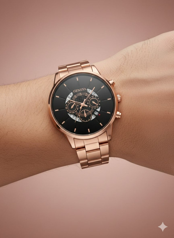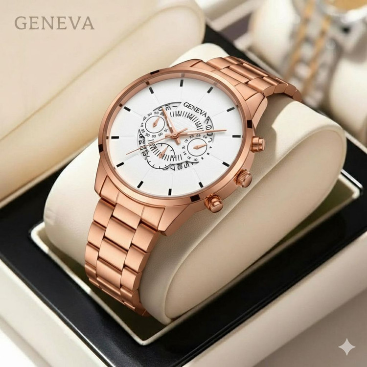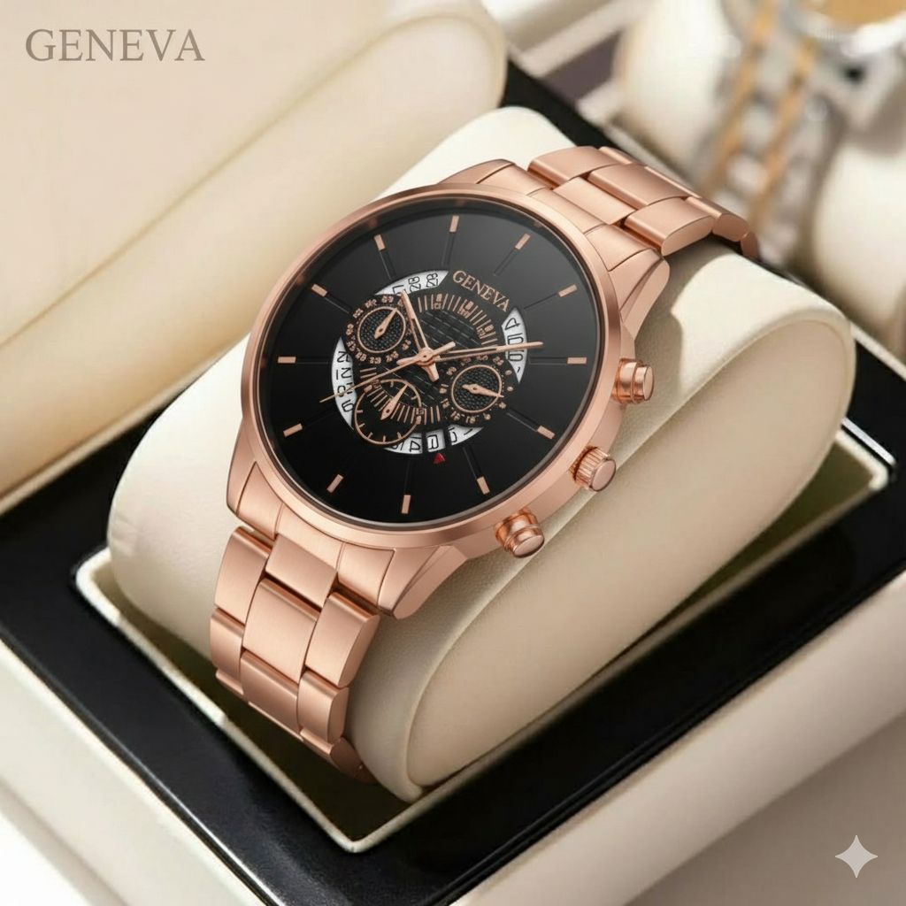ساعت مچی زنانه کد 2278 مردانه برند GENEVA بند فلزی قفل کلیپسی موتور کوارتز باکیفیت طراحی خاص و زیبا صفحه مشکی دارای روز شمار طرح سه موتوره