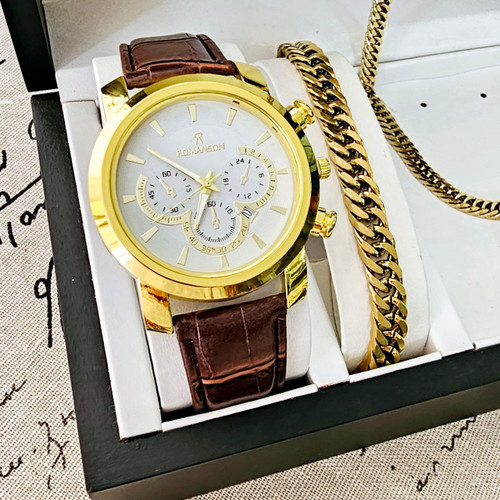 ست ساعت زنانه ومردانه برند رومانسون Romanson بند چرم