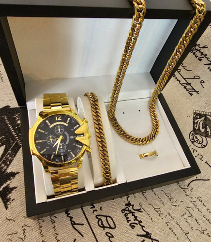 ست مردانه ساعت ودستبند وانگشتر وگردنبند برند شرکتی رنگ ثابت