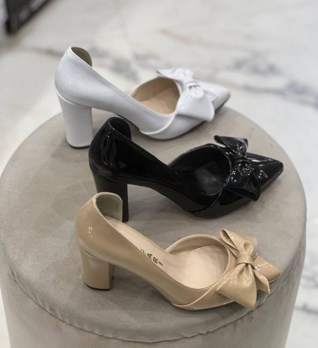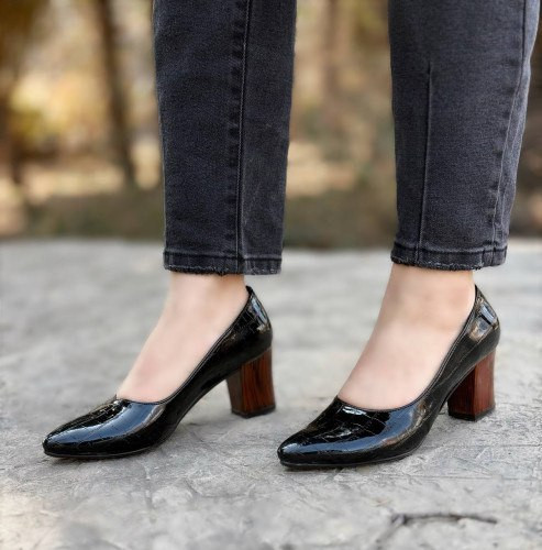 کفش مجلسی زنانه مدل طاها رویه ورنی چاپی پاشنه دلتا چوبی زیره دلتا 4 سانت